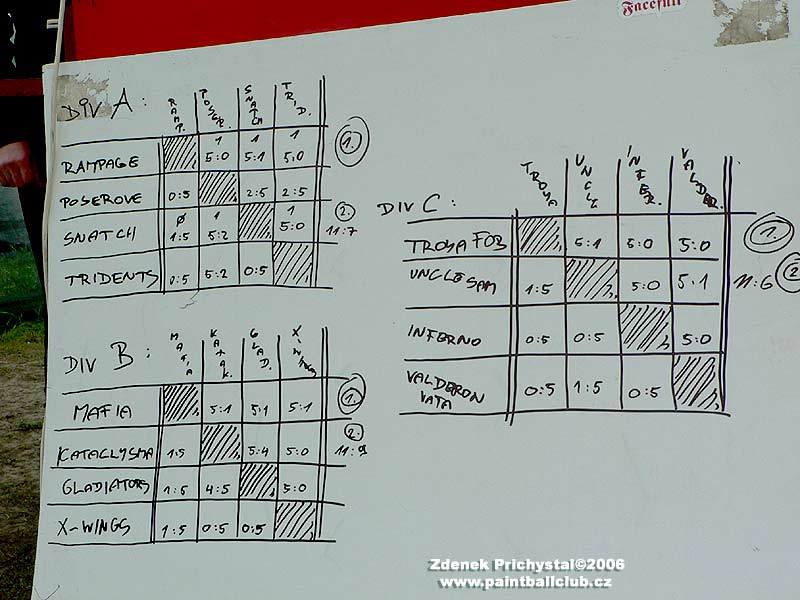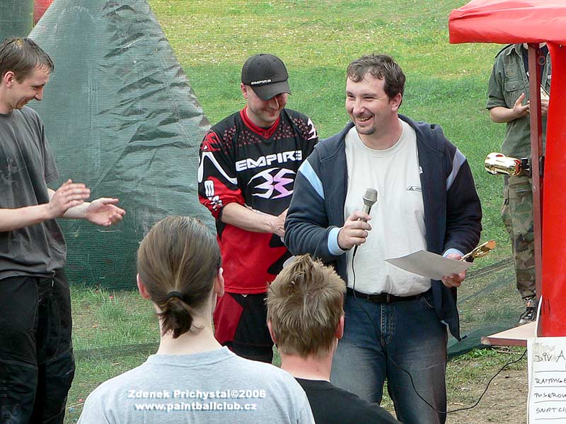Takže krátce vlastní dojmy: toto kolo mě osobně připadalo jako zatím nejlepší z obou ročníků, mimořádně pohodová atmosféra, akurátní počasí, vzduch 3000 a 4500 psi, bezproblémové kuličky i hráči. Co se týče hráčů a týmů tak jsem nabyl dojmu že tentokrát si přijeli opravdu zahrát jen pro radost a pobavit se, bez zbytečné rivality a agrese a naprosto tak naplnili poslání turnaje. V roli rozhodčích se blýskl tým Vendetta a spol, tímto jim za velmi dobře odvedenou práci opožděně děkuji. Vítězství si zaslouženě odnesl tým Rampage, druhá byla Mafia, třetí Troja FOB. Jako nejlepší nový hráč turnaje byl vybrán Honzek. Role speakera se tentokrát ujal Peťa Valášek, známý bavič a to k plné spokojenosti hráčů i publika. Nejpěknější byly finálové zápasy Mafia vs Rampage, dynamický paintball bez zbytečných průtahů v podání velmi zkušených hráčů.