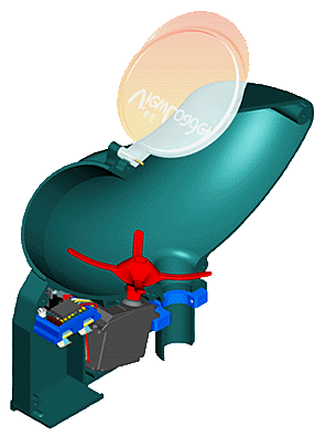 Hlavní změnou je modernizace obvodové desky, která snížila dobu odezvy mezi sebou a motorkem o 20% a zvýšení výkonu motorku o 15%, což v praxi znamená rychlejší posuv bez zbytečných prodlev, zřetelně prodloužené listy vrtulky zase spolehlivě a bezpečně promíchají kuličky. Výrobce udává rychlost posuvu až 16 kuliček za sekundu, což X - board sice zdaleka neřadí k nejrychlejším zásobníkům na trhu, ale jeho výkon je dostatečný pro naprostou většinu vysokokadenčních zbraní. Pohon zásobníku zajišťují dvě 9V baterie, se kterými X - board nyní pracuje hospodárněji. Zachována zůstala i dioda upozorňující na slábnoucí baterie a on/off vypínač, vzhledově se tedy tento model od svého předchůdce v ničem neliší.