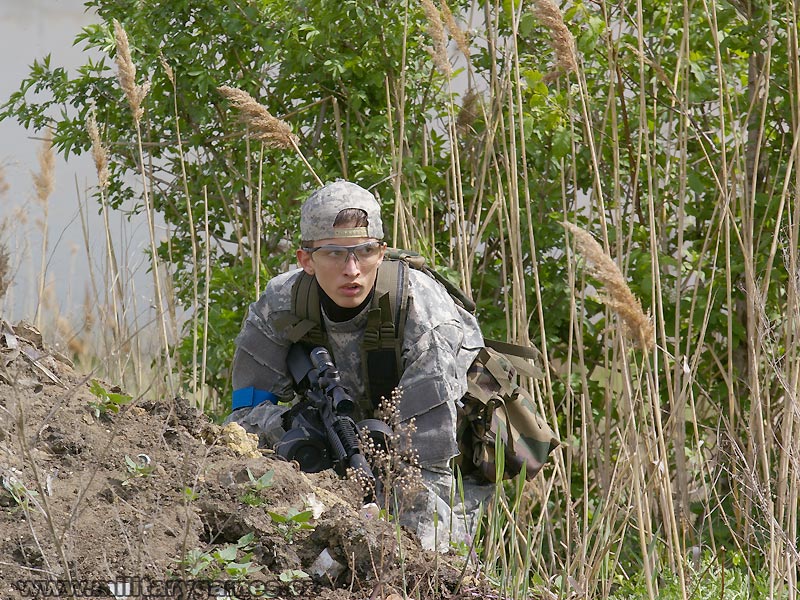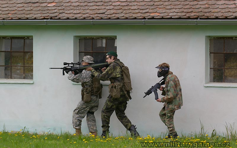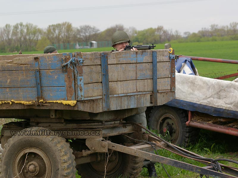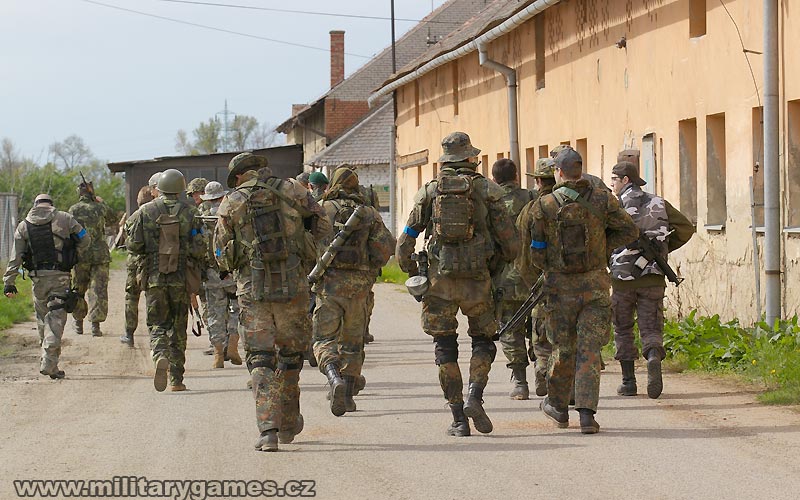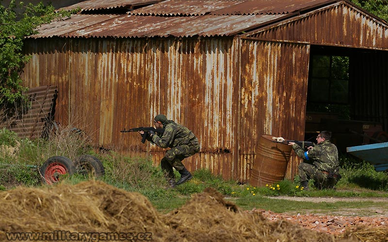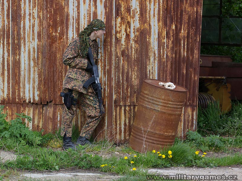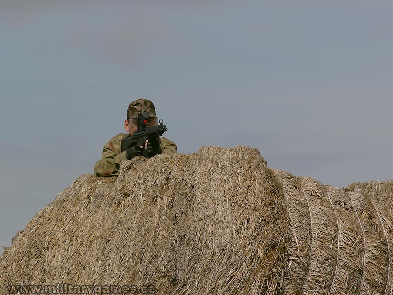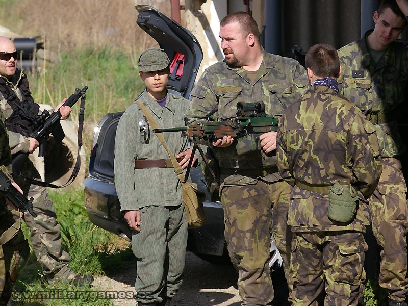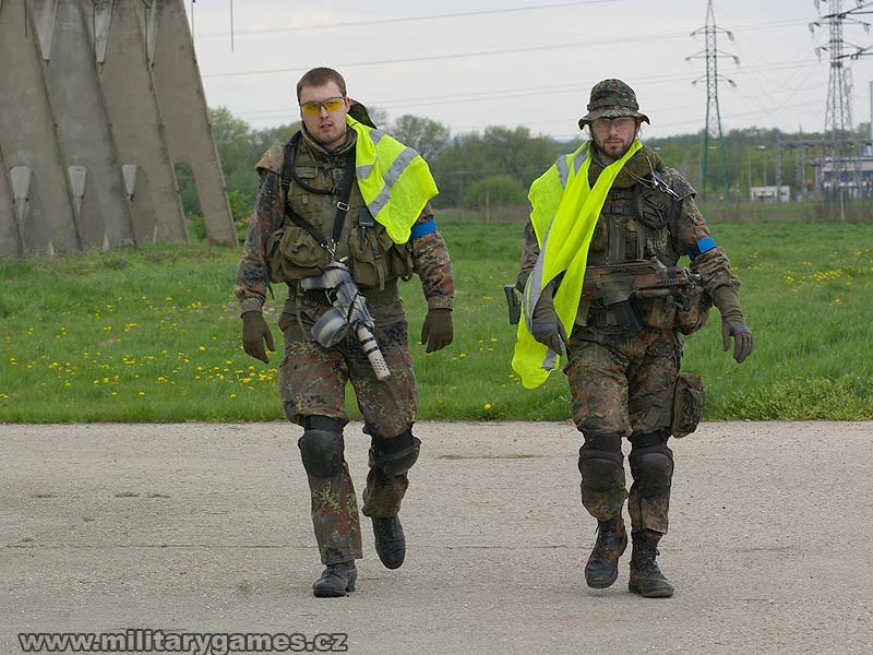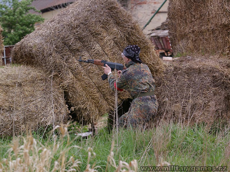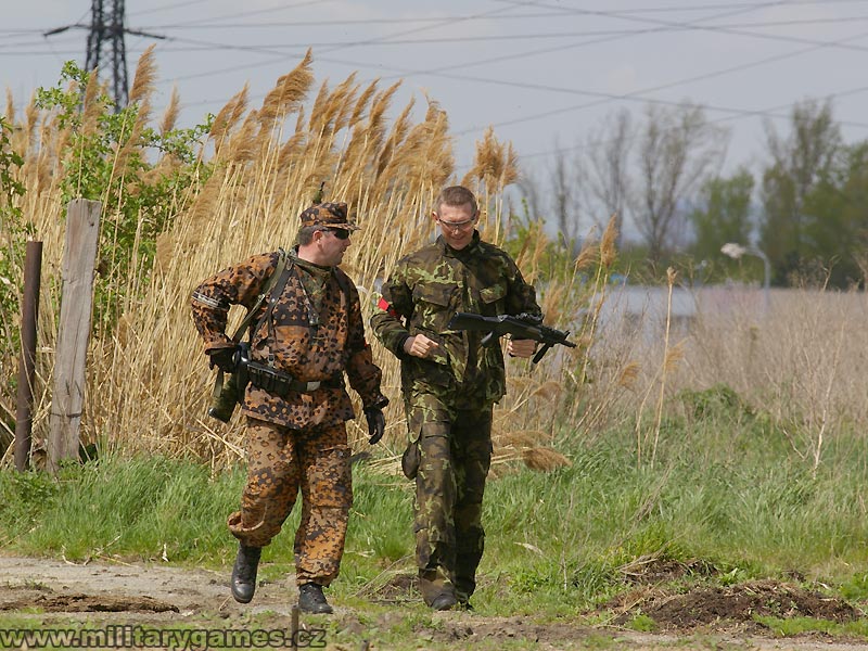 Hrálo se několik různých her, tento den bez respawnu, zajímavá byla hra dle Karlova scénáře kdy bylo nutno v určeném čase dobít tři stanoviště flaku, které byly bráněny posádkou a minami claymore. Následovaly další a další hry, mezi nimi bylo i několik pouze pistolových, které se setkali s velkým ohlasem. Výhodou v tomto poměrně otevřeném terénu bylo vlastnictví výkonných zbraní, slyšel jsem zde o ověřeném zásahu plynovou odstřelovačkou na asi 120m. Vyšší upgrade zde přispívá k větší "realitě" her, odpadá zde panáčkování na 30 m kde u základních zbraní končí hranice dostřelu a bylo tedy nutno dávat si pozor a maskovat se na poměrně dlouhé vzdálenosti kolem sta metrů, v této zóně je již hráč vystaven dostřelu výkonných zbraní a tak musí své chování přispůsobit tomuto faktu. Dlouhé zbraně se srovnatelným upgrade většinou mají delší dostřel nežli zbraně krátké a to co v reálném světě rozlišuje výkon zbraní (např. munice) to zde nahrazuje upgrade. Hry jsou tedy "realističtější" a podstatně náročnější, trs trávy nebo křoví nás již neochrání a nepřítel je schopen zasáhnout nás i na poměrně velkou vzdálenost, což sice nevyhovuje většině týmů se základními zbraněmi ale na druhou starnu uspokojuje náročnější a vyspělejší hráče.