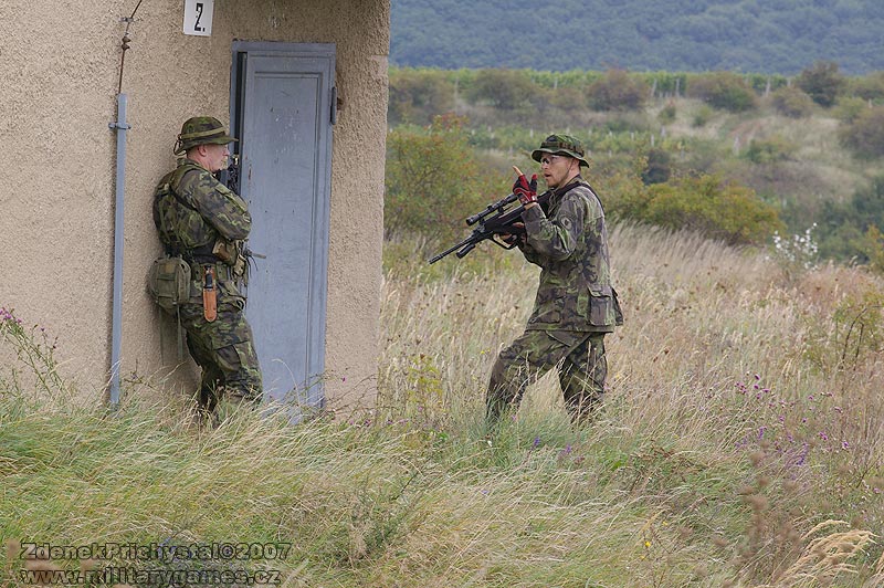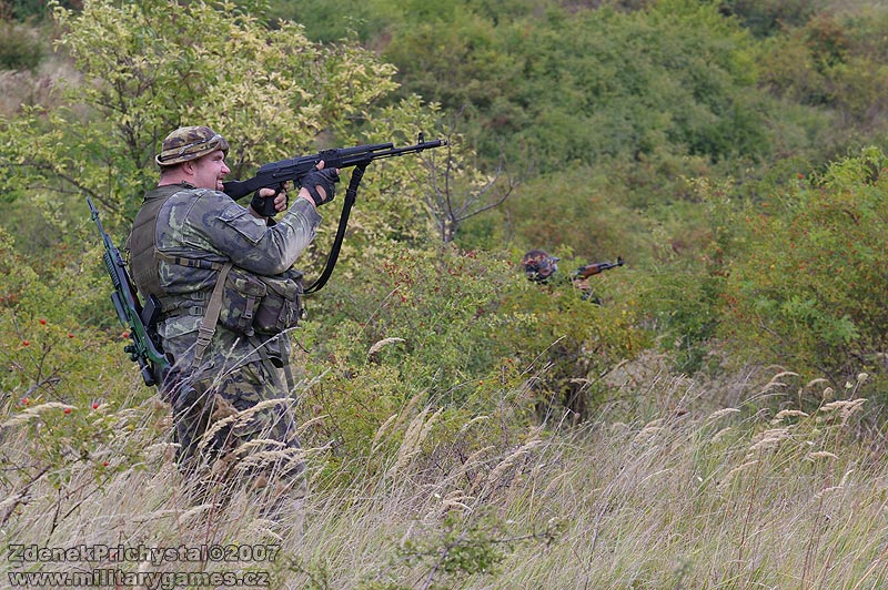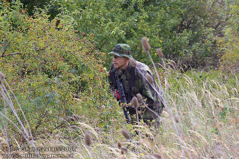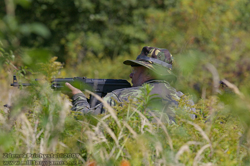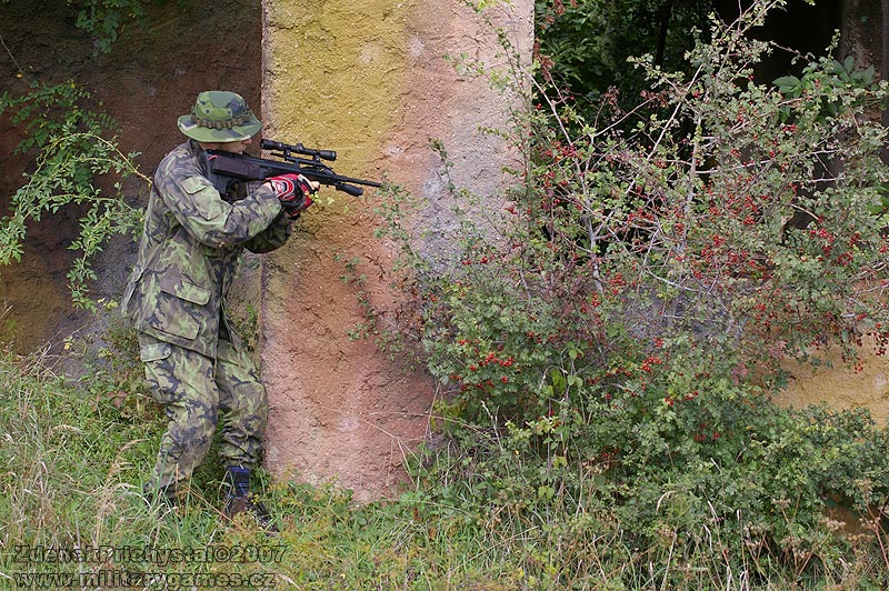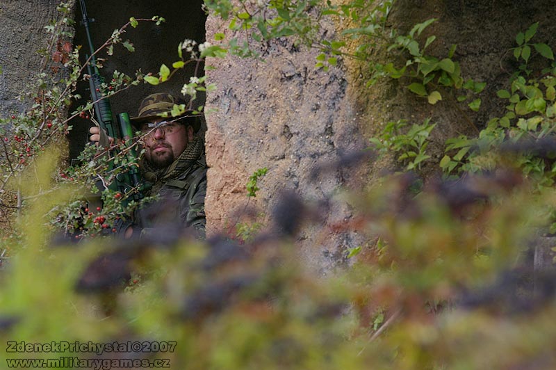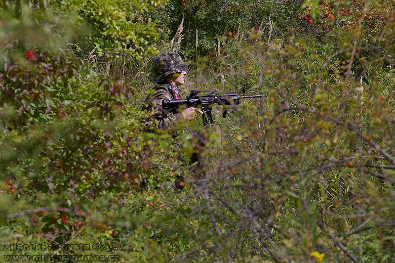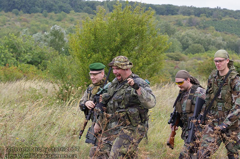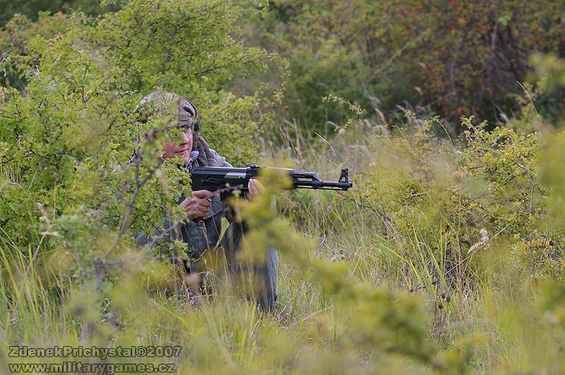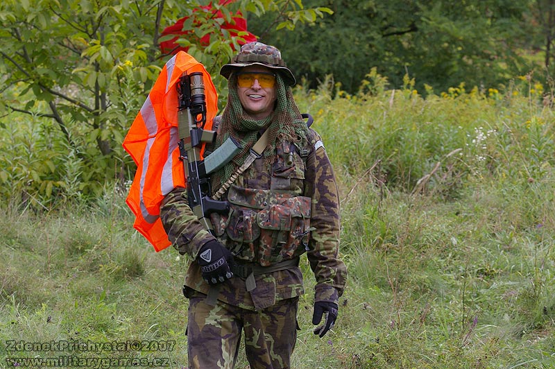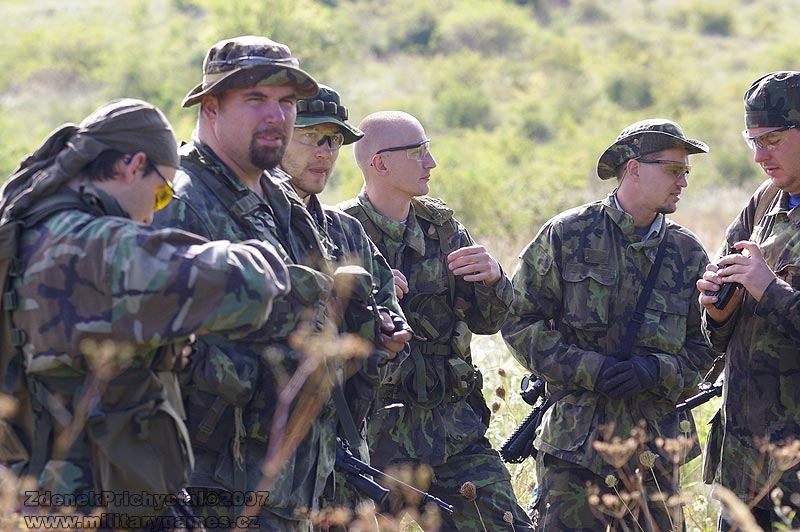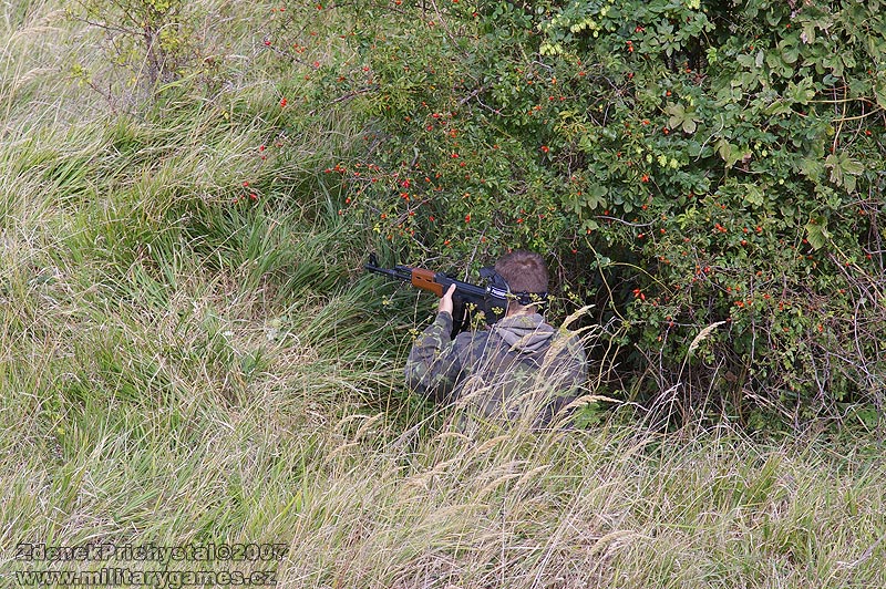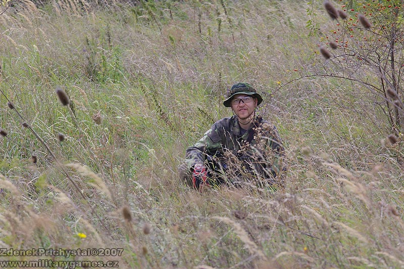 Tak první poprázdninová hra je za námi, odehrála se v atraktivním a rozlehlém prostoru vojenské střelnice Mikulov. Jako hosté zde byli kluci z Ostravského shopu a samozřejmě jádro věrných příznivců námi pořádaných her. Hrálo se po celý den a závěrem se ještě dlouze debatovalo, také Monty a Peťa z Brněnského shopu zde dávali k dobru historky z dob služby vlasti. Hry byly zpočátku velmi opatrné, bojovníci se navzájem oťukávali a svým dílem k tomu přispěl i velmi nepřehledný a zrádný terén. Hrálo se většinou na dvě vlajky nebo na dobývání, každý pohyb a přesun bylo nutno velmi pečlivě vážit neboť snipeři žádnou chybu nepromíjeli a kdo zná Montyho, ví o čem je řeč:) V druhé části dne hry nabraly na spádu a akčnosti, hrálo se více na tělo a i kadence nabrala na síle, poprvé se zde dobývala kontrolní věž, což Montymu bohužel vyneslo průstřel tváře. Zde se ukazuje nutnost použití ochranných masek, boje zblízka v budovách jsou velice nebezpečné, vysoký výkon zbraní, přemíra adrenalinu a nepřehledné bojiště jsou a budou příčinou mnoha nepříjemných a bolestivých zranění, tak tedy image stranou a chraňme svoje zdraví!