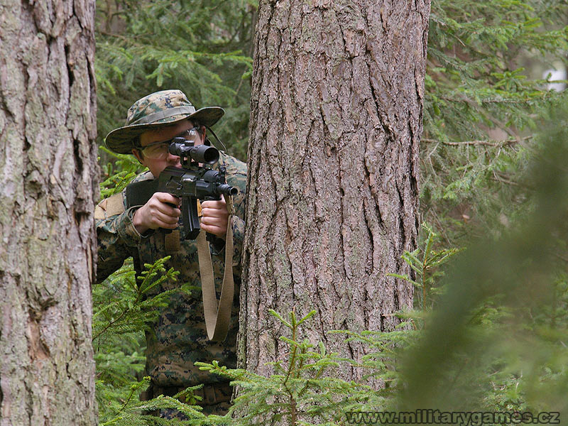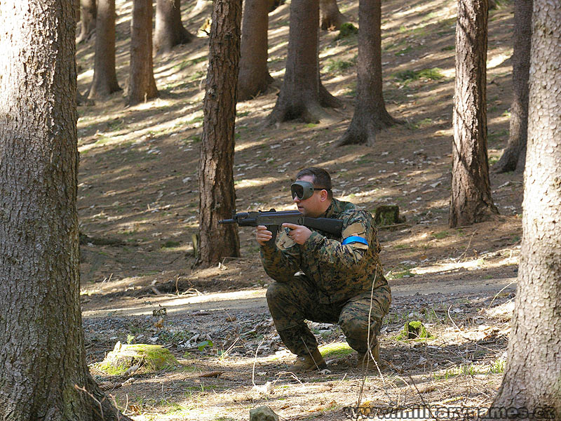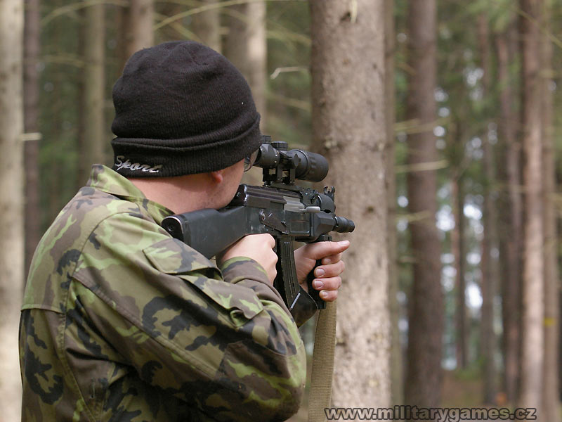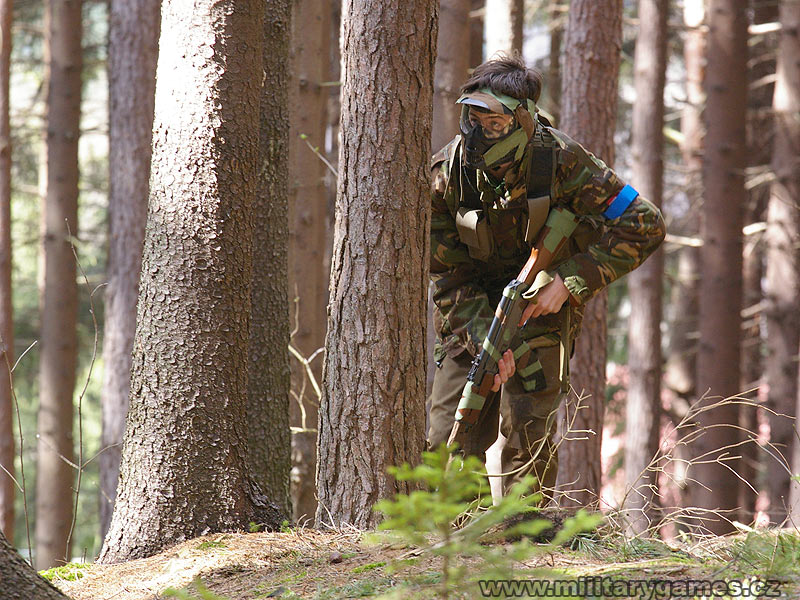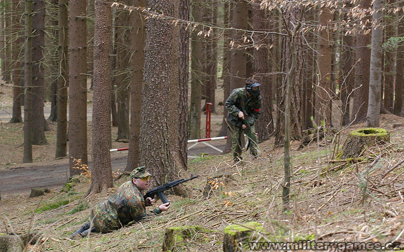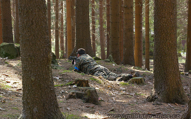 Původní scénář her počítal s rozsáhlým herním prostorem, který protínal potok a bažinatá louka, ovšem po podrobném průzkumu terénu který jsme s Deepym provedli bylo od tohoto záměru upuštěno, neboť potok byl rozvodněný a spadlé stromy které měli sloužit jako lávky byly velmi kluzké a prakticky nepoužitelné a na brodění zatím nebylo to správné počasí:) Hrálo se tedy v přilehlém smrkovém lese s minimem podrostu a rostoucím v mírně kopcovitém terénu, což umožňovalo hráčům rychlé přesuny. Výhohu zde tedy měli ti, kdož dávají přednost rychlé týmové hře kdy rojnice hráčů využívá palebné síly a neustálého tlaku na protivníka před těmi, kdož přeferují individuální hru. Osobně mě zaujala velmi dobrá koordinace a taktika hráčů např. z airsoft teamu Hrušky vedených p. Dubnickým, tento tým je hru od hry lepší a jak se vyjádřil Jirka z Bad boys, hráči onoho týmu jsou jak rozzuřené vosy, nedají protivníku vydechnout:) Popravdě všichni zůčastnění ( bohužel nemohu zde všechny jmenovat, seznam by zabral půl stránky:) podávali velmi dobrý výkon a tím je zřejmé že tento typ her si oblíbili ti, kdož dávají přednost útočným, rychlým a agresivním hrám ( taktika speciálních sil) a myslím že vydrží-li, bude toto uskupení v budoucnu jen velmi těžko hledat důstojného protivníka v rámci ČR.