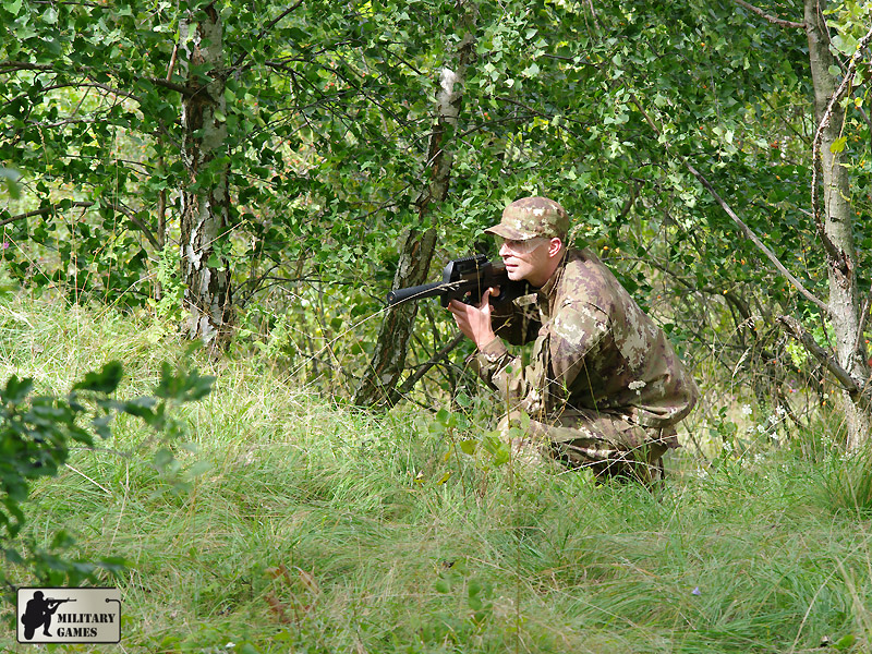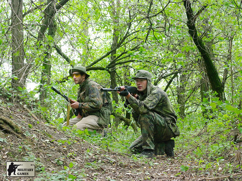 Důkazem toho, že tento terén neoslovil jenom mě, ale i ostatní správné hráče, svědčí i slušná účast a to i přez poměrně nepříznivou předpověď počasí a relativně velkou vzdálenost od Brna. Dopoledne se hrálo ve střední části rokle, standardně krátké akční hry na dvě vlajky a dvojsérie her s otočením stran. Tento systém je zavedený a Militarygames.cz jej používá na většině námi pořádaných her. Poté se hrálo v krajní, více přehledné části rokle, odkud pochází i většina fotografií, neboť toto je jediná část, kde se dá fotit. Zde se s plným nasazením hráčů hrálo až do oběda. Odpoledne se vyzkoušela v sérii her zadní část rokle a herní den se zakončil opět hrami ve střední části.