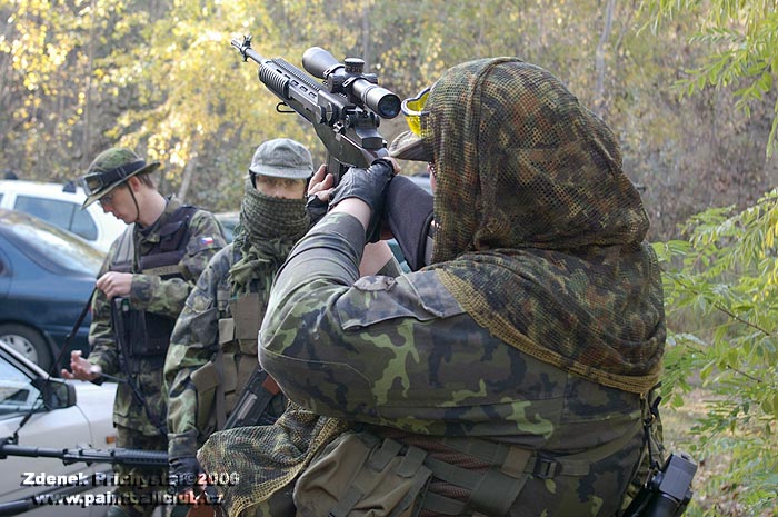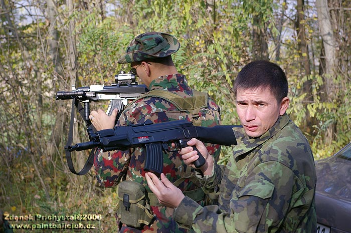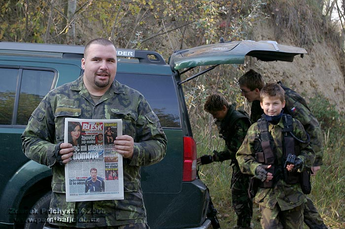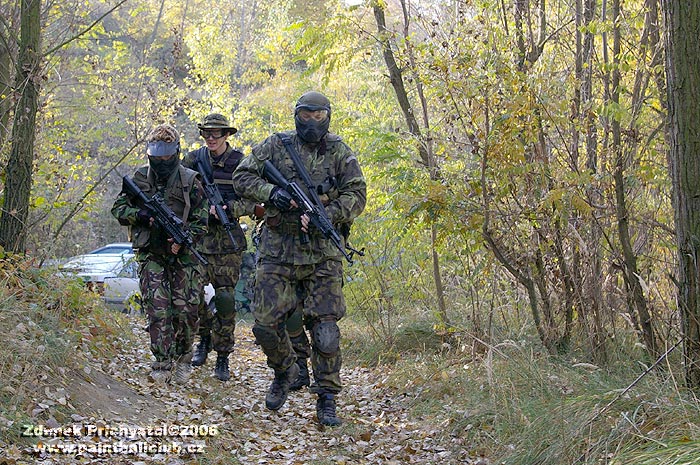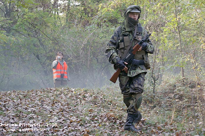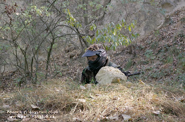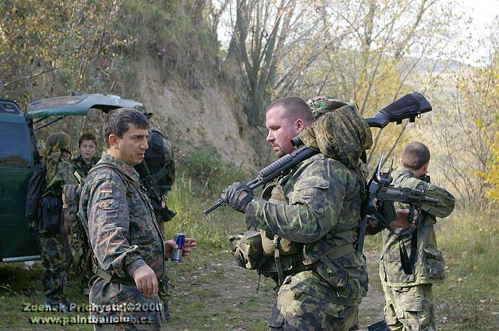 Tradičně se zde sešla velmi dobrá parta, jak se sami můžete přesvědčit na přiložených fotografiích, bohužel zde nemohu všechny jmenovat neboť na to by tato stránka nestačila ( a taky se přiznám že si bohužel stále nepamatuji tu spoustu jmen a přezdívek ale určitě se polepším:), takže jen namátkou: Monty, malý a velký Ivo, Čonki, Murat, Zurab a Šamil, Matrin, Jirka s Petrem a Hankou, náš Jirka a mnoho dalších, které budeme jmenovat třeba zase příště tak, aby se dostalo na všechny, protože si to za svoji pravidelnou účast rozhodně zaslouží. Slunečnému počasí odpovídala i nálada všech přítomných, celý den dýchal pohodou a až na několik ( věřím že neúmyslných) nepřiznání zásahů vše probíhalo v naprostém klidu. Hrálo se vždy v předem určené části rokle, dle dohodnutého scénáře a většina her nebyla časově omezena. Samozřejmostí bylo použití neranivé pyrotechniky a dýmovnic. Hry probíhaly klidně a plynule, v tomto nepřehledném a členitém terénu se totiž nevyplácí spěchat, jak jsem se sám několikrát přesvědčil:( Opět zde bylo v klidové zóně pro hráče připraveno občerstvení provozované šéfkuchařem Kamilem, tentokrát připravil drůbeží guláš, jako moučník čokoládové oplatky, na pití obvyklé pivo-limo a jako specialitu výborné svařené víno:) Kamil si tentokrát udělal i čas a na vlastní kůži si vyzkoušel airsoft. Víťa, náš nepostradatelný paintballový spolupracovník, zde týral jednu ze svých čtyřkolek a také okusil airsoftu v několika hrách, aby poté vznesl dotaz kolik že stojí takový Klašnikov? Jak tedy vidno, airsoft chytne každého:)