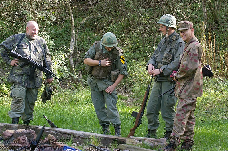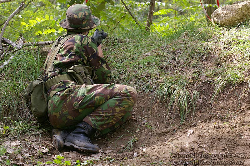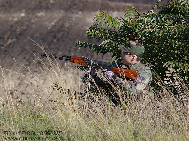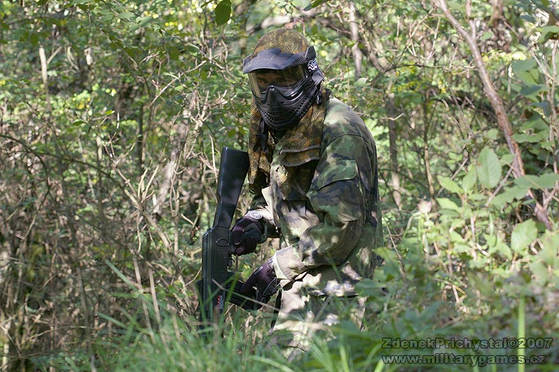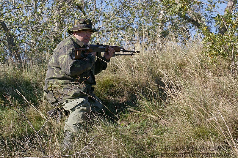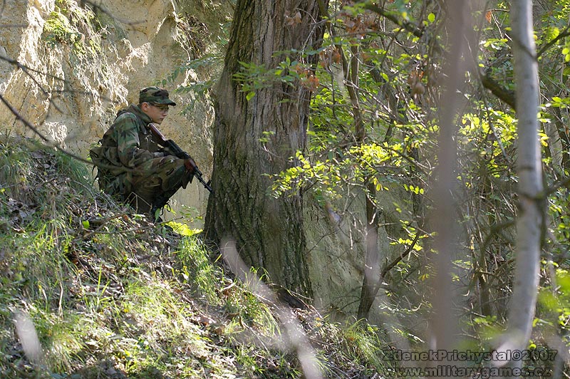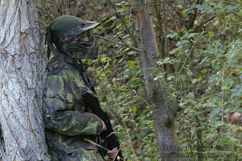 Jak je vidno z přiložených fotografií, počasí bylo v sobotu 29.9. velmi teplé, nebe bez mráčku a nálada přítomných uvolněná, pohodová. Většina her proběhla v zadní části Kobylské rokle, hrálo se na středovou i na dvě vlajky, na obsazení základny. V této roční době je listí již částečně opadané a tak se jinak naprosto nepřehledný terén rokle stal přece jenom průhlednějším, bylo nutno pohybovat se opatrněji než zde bývá zvykem v létě. Na druhou stranu, listí se již barví pestrými barvami podzimu, zem je sytěji zbarvena a pokryta barevným opadaným listím a došlo tak k rozbití jednolité letní zelené plochy, což samozřejmě stěžuje identifikaci protihráčů, obzvláště jsou-li oděni do vhodných maskáčů, zbytečně se nehýbají a využívají pestrého pozadí.