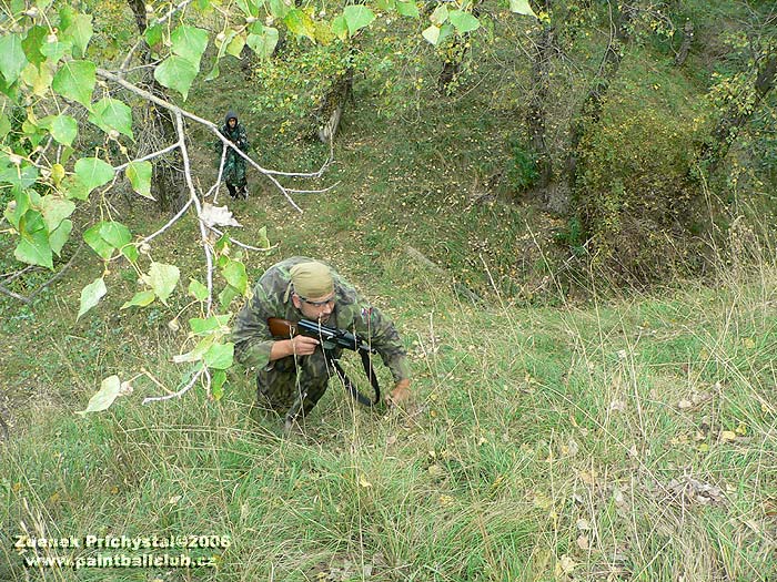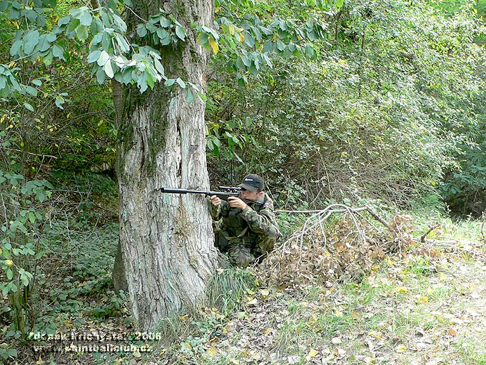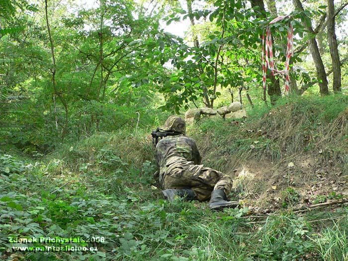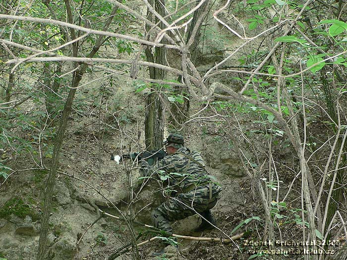 Tak tedy v sobotu se nás zde sešel opravdu hojný počet, k vidění zde byli všichni naši známí z her minulých a další kamarádi kteří s námi hráli poprvé a doufám že ne naposledy:) Výzbroj se skládala ze všech možných typů a značek zbraní, od manuálů až po plynové odstřelovačky a vysoko kadenční kulomety, ale díky členitému a nepřehlednému terénu zde měl šanci každý, bez ohledu na výkon zbraně. Jak jsem se již zmínil, počasí bylo velmi teplé a slunečné, pouze později odpoledne začalo drobně a vytrvale pršet, což bojům dodalo tu správnou atmosféru. Bojovalo se vytrvale celý den, pouze s krátkými přestávkami, což kladlo značné nároky na fyzičku zúčastněných. Já osobně mám tento terén rád i právě kvůli jeho obtížnosti, po třech hodinách rychlých bojů v tomto terénu má člověk opravdu dost a po celém dni je příjemně unaven a plně spokojen.