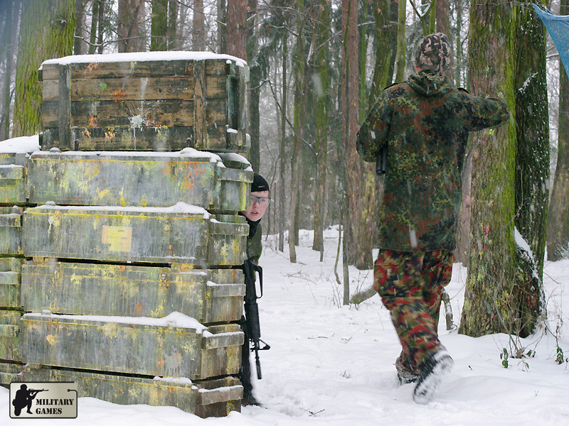 Je pravda, že jsem hráče trochu podcenil, myslel jsem že zima a sněžení všechny spolehlivě udrží doma, ale mýlil jsem se, už podruhé v životě:) Sešla se zde prověřená parta hráčů ochotná hrát i ve sněhu, což je mimochodem velmi zajímavé a v zimě i stylové, navíc toto hřiště je pro hry s manuálkami opravdu jako stvořené, velké množství překážek, mnohé z nich díky škvírám pro dobrého snipera prostřelitelné, pevnůstky a zákopy zde vytváří velmi členité a nepřehledné prostředí. Přičteme- li i husté sněžení které snižovalo viditelnost a bílé maskování některých hráčů, je jasné, že hry byly velice akční a dramatické. Hrálo se od rána až do odpoledně, jedna hra za druhou, s minimálními přestávkami. hráči na hřišti nechali vše, pohyb ve sněhu byl únavný a vyčerpávající, také vysoké tempo her udělalo své a tak konec herního dne všichni přijali s úlevou.