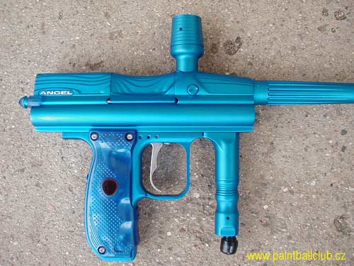 Jednou ze zbraní nabízejících požadované vlastnosti za rozumnou cenu je i Angel Speed. Chybí mu sice přesnost Impulse AZ Eliminatoru, ale na druhou stranu umožní méně zkušenému hráči snáze dosáhnout vyšší kadence. Speed na první pohled zaujme velmi malým tělem, navíc velmi ladného vzhledu. Proti předchozím modelům byl i značně inovován, podívejme se na některé z jeho vylepšení : nový přehledný informační display, dvojitá nízkoprofilová blokace, odlehčené vyměnitelné kladívko, o 50% účinnější ram ventil, nízkotlaký šetrný regulátor, účinnější bolt, nová 4,8 v nabíjecí baterie pro 100 000 výstřelů, spoušť umožňující kadenci až 30 kul/sec., 5 stavitelných střeleckých módů, sensi detekční systém a mnoho dalších. Zde je vidět že výrobce nic neponechal náhodě a opravdu se snaží nabídnout hráčské veřejnosti to nejlepší. Jednou z nejdůležitějších změn je snížení provozního tlaku, tedy jedné z nejvíce kritizovaných vlastností předchozích modelů jako např. IR 3. Speed tedy pracuje s již rozumným tlakem 300 psi který může být ještě více snížen použitím vhodného volumizeru na dobrých 180 psi, což je ve srovnání s Impulse AZ Eliminatorem který pracuje na 90 psi sice stále ještě mnoho, ale na Angel je to pokrok. Při střelbě se Speed s tlakem 200 psi choval klidně, byl znatelně klidnější než již zmíněný IR 3.