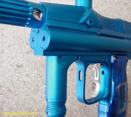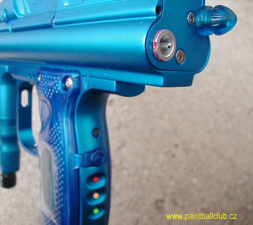 Zajímavý je i nový " sensi " detekční systém který je piezoelektrickým okem hlídajícím správný posaz kuličky před výstřelem. Jeho nastavení je jednoduché a plně automatické. Osobně si myslím že Vision eye od Smart Parts je přece jenom spolehlivější, ale zdůrazňuji že jde o můj osobní názor. Nicméně je pravdou že sensi umožní střelbu opravdu pekelnou kadencí s minimem trhů. Zbraň je uživatelsky velmi jednoduchá a takové je i nastavování rychlosti které se provádí na integrovaném LPR. Při zkušební střelbě na měřáku bylo kolísání rychlosti pouhých 5 stop, což je na elektropneu velmi slušné. Dodávaná hlaveň je vynikající, ale osobně bych přece jenom upřednostnil 12" DYE která je snášenlivější ke kuličkám a má dle mého názoru lepší balistiku. Velmi dobře a jednoduše je řešeno čištění venturi boltu, toto řešení lze Angelům opravdu závidět. Spoušť je dvouprstá a pohodlná, jemná a plně stavitelná ve všech směrech. Osobně bych uvítal spíše typ blade, tedy rovnou která je vhodnější pro střelbu střídáním prstů. Vynikající a komfortní je pažbička která se díky zvolenému úhlu velmi dobře drží a je velmi pohodlná.