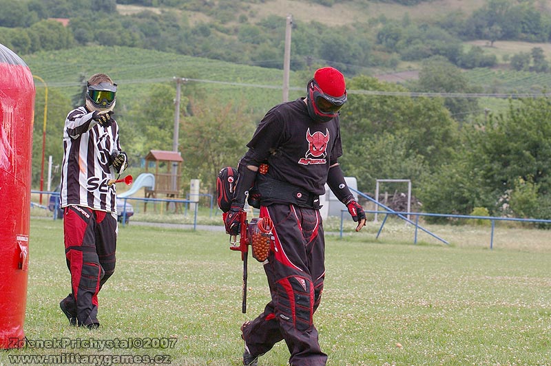 Neznám krásnější prostory pro paintballový turnaj, než je fotbalové hřiště v Dolních Věstonicích. Dokonalá rovina, hustý travnatý povrch, nové zázemí vybavené wc i sprchami, restaurace s bazénem, to vše vzdálené ne více jak sto metrů od herní plochy a navíc z jedné strany ve stínu monumentální Pálavy, ze strany druhé omývané vodami Novomlýnských nádrží. Ideální místo jak pro hru, tak i pro následnou rekreaci anebo alespoň malý výlet spojený s ochutnávkou zdejších uznávaných vín, vždyť vinné sklípky jsou zde prakticky na každém rohu:)