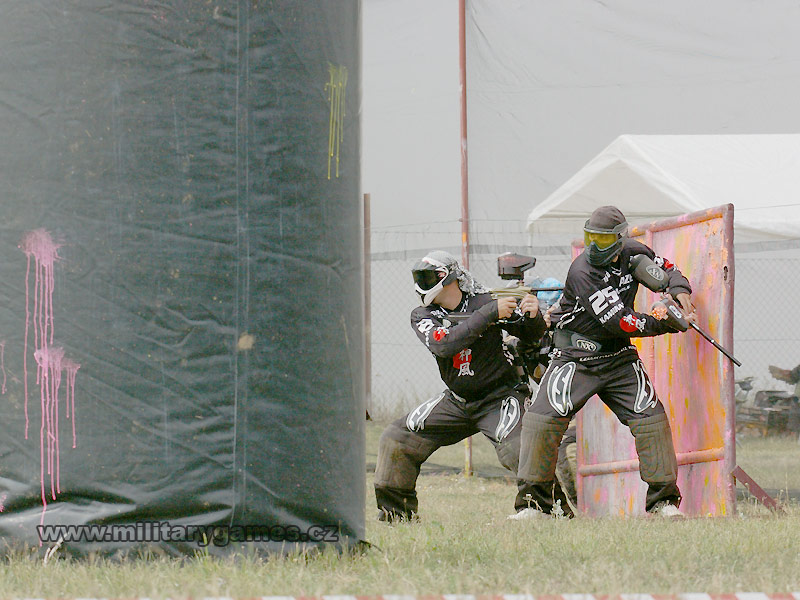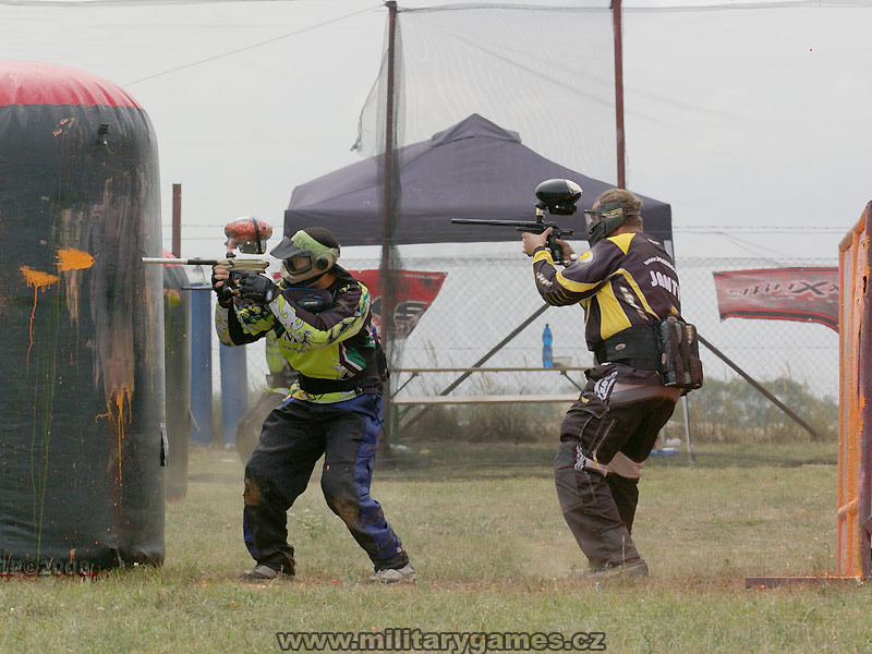 A právě v tomto jedinečném stylu probíhal sobotní turnaj pořádaný v Němčičkách u Brna místními nadšenci ve spolupráci s AZ paintballem. Díky nadšení a pracovitosti hráčů paintballu z Němčiček a zkušenostem a vybavení AZpaintball tak zde probíhá pravidelná série xballových turnajů, která je vždy beznadějně obsazena, což svědčí o jejím věhlasu a renomé. Vím o vzájemné nevraživosti hráčů paintballu a airsoftu, ale vězte, že tomu není třeba, vždyť obé je v podstatě stejné, liší se pouze střelivo. Boj na kontaktní vzdálenosti má svá pravidla a pramálo záleží, čím střílíte, jestli 0.68 paintballovou kuličkou nebo airsoftovou bb. Pro toho, kdo to myslí s výcvikem k airsoftovému boji vážně, je x-ballová zkušenost opravdu přínosem, hráč se zde naučí rychle a samostatně rozhodovat a konat, využívat příležitosti a "tlačit" se kupředu, což jsou prvky nezbytné v vítězství. Proto doporučuji navštívit a shlédnout některý z turnajů v tomto stylu a věřím, že některé z vás zaujme a vy si jej bez předsudků vyzkoušíte a také objevíte jeho akční kouzlo.