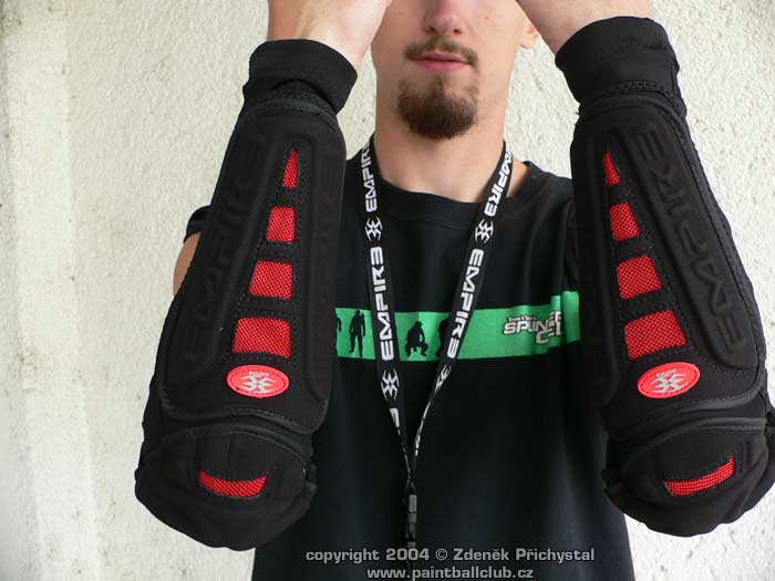 Naše kolena a lokty jistě nejsou nadšeny z hraní paintballu tak, jako my. Při různých pádech a nárazech jsou neustále otloukány a naráženy, sám mám několikráte rozseknuté koleno a tak vím o čem hovořím. Ono popravdě vytahování vody z naraženého kolena také není nejpříjemnější, kdo to zažil ví, o čem mluvím. Je tedy až s podivem kolik peněz investujeme do drahého vybavení, značkových tub, panoramatické masky a dalšího vybavení a na ochranu těla zapomínáme, v lepším případě ji řešíme spíše polovičatě. Proto jsme s povděkem uvítali novou kolekci chráničů firmy Empire, která je pěkná na pohled, pohodlná při nošení, velmi kvalitní a především opravdu účinná a spolehlivá při ochraně našich nepostradatelných končetin. Vyrobena je z prvotřídních materiálů s antialergickou úpravou, dobře se nosí, neklouže a netahá. Proto si ji dobře prohlédněte a popřemýšlejte zda i vám se ochrana vlastního zdraví nevyplatí a nezapomeňte - zdraví máme jenom jedno!