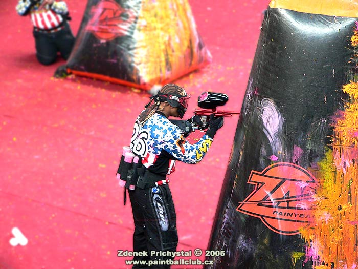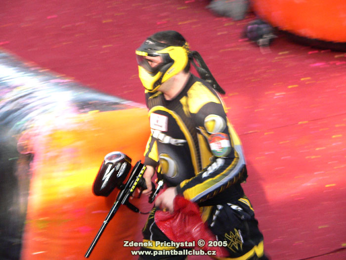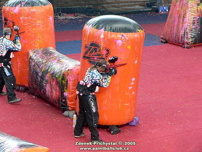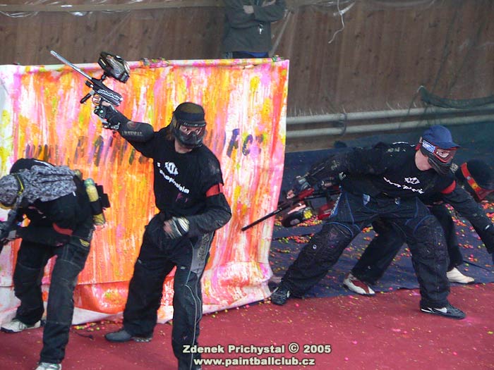 Hala byla solidní, podmínky pro diváky výborné, hřiště neslo zřetelný Troja styl a umožňovalo hru i méně zkušeným týmům. Hrálo se na dvě kategorie, nováčci a amatéři ( mimochodem, všimli jste si jak děsně zní ono "amatéři"? Na mě působí přímo depresívně, neboť nováček je jasný ale amatér zní dosti urážlivě) kde o vítězství bojovaly týmy z několika zemí. Dopoledne tedy bylo ve znamení nováčků, odpoledne hráli amatéři. Ve vyšší skupině byl k vidění velmi kvalitní paintball, bohužel většinou v režii zahraničních týmů. Vynikající a velmi, velmi přesvědčivý výkon podávali němečtí Chronophobia, drtící a velmi přesná střelba, výborný cit pro hru jednotlivých hráčů a dokonalá týmová souhra, následovaní velmi vyrovnaným soupeřem, maďarskými Bullets, temperamentním týmem s vynikajícím střeleckým uměním a výbornou taktikou. Exotickou perličkou byl tým složený z amerických hráčů kteří vynikali velmi rychlou střelbou a pohodou. Z českých týmů byl v této kategorii k vidění pouze jeden a to Rampage, v němž mě zaujal Tomáš Novotný, docela si ho dovedu představit v teamu Mafia a to k oboustrannému prospěchu. Rozhodčí byli tolerantní a hru měli pod kontrolou, koneckonců jednalo se o profesionály pod vedením známého a ostříleného Quina s výpomocí zkušených hráčů týmů Troja a Mafia. Osobně bych uvítal více sportovní atmosféru, chyběla zde muzika a povzbuzování, to druhé ale bohužel pořadatel neovlivní.