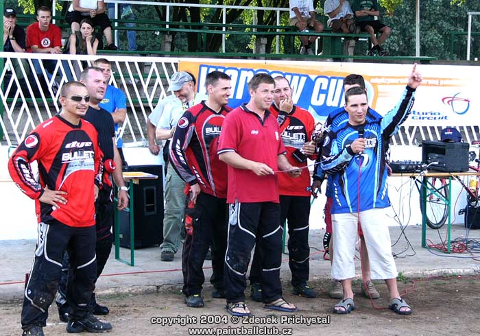 Druhý den ráno pršelo, ovšem pouze do začátku první hry takže to bylo zřejmě plánované. Využívajíc toho že nejsem hráč a nemusím být na stadionu včas a plánované schůzky byly až po obědě trávil jsem první část dopoledne v posteli u televize a sledoval vysílání v polštině, což je mimochodem velmi zábavný jazyk. Nedělní hry již byly opatrnější, hrálo se o postup a to se nevyplatí riskovat. K vidění byli některé opravdu zajímavé mače, velkou úlohu zde hrálo i štěstí. Týmy zde byli velice vyrovnané, velmi dobře takticky vybavené, kvalitně vyzbrojené a velmi agresivní. Možná se ptáte s čím se hrálo. Nebo se neptáte ale já vám to stejně řeknu. Víte, to je výhoda vlastních stránek, můžu si psát co chci a vy mě nic nemůžete udělat, tedy až do doby než mě potkáte. Tak tedy k vidění zde byly Intimidatory ve všech verzích, které sice vynikají velmi vysokou kadencí ale osobně mě moc neoslovily, zdají se mě dlouhé a příliš spyderovité, dále vynikající Matrixy DM4 a 03 LCD se všemi regulátory vyměněnými, což potvrzuje můj názor na regulátory Torpedo od DYE, krásné a výkonné e-blade autocockery, spolehlivé Impulsy a Shockery 02 i 03 a samozřejmě Angely všech generací, zdá se že modelem 04Fly se Angel znovu vrací na výsluní. V této kategorii zbraní je výkon velmi vyrovnaný, spíše zde záleží na solventnosti a individuálních potřebách hráčů. Jednoznačně je ovšem v moderním paintballu zapotřebí kadence a kdo tvrdí že ne, je trouba a měl by někdy takovýto dobře obsazený turnaj navštívit, je skutečně rozdíl mezi sportem a big game, na což většina lidí bohužel ráda zapomíná. Proto dobrá rada, chcete-li být sportovní hvězdou, raději zapomeňte na Spyder a vězte, že není kompromisu. Kuličky samozřejmě hrají velmi důležitou roli, nejvíce se zde hrálo s DraXxusem, konkrétně Inferno. Závěrem dne opět X-ball, nyní Maďarsko vs Rakousko. Super rychlá hra, vysoké nasazení, možnost radit přímo ve hře, pastva pro oči. Myslím že je na čase aby se začal stavět i český národní tým, X-ball je budoucnost paintballu, kdo ho jednou okusí, nechce jinak. Poté již očekávané vyhlášení výsledků a pozvání na další kolo které se koná v Moskvě a na večerní WDP párty konanou v klubu Mexicana. Do Moskvy bych také velmi rád, myslím že bude nejlépe a nejsilněji obsazeným kolem, na párty neméně, zvláště poté co jsme viděli hostesky a program, ovšem domov volal a nás čekala dlouhá a únavná cesta domů. Osobně bych tento turnaj hodnotil velice kladně, nikterak nezaostával za Pražským kolem a myslím že EEPL je budoucností východoevropského sportovního paintballu. Jednalo se tedy o pracovně/rekreačně strávený víkend s paintballem a myslím že stál za to. Je jen škoda že si více českých týmů nepřijelo kvalitně zahrát, bez konfrontace s takto kvalitními týmy se lepšit nebudou, což je mimochodem zřetelně vidět na české lize, zde se růst zastavil a týmy stagnují. Jistou zkušeností je i pohled zvenčí, vyplatí se tedy zúčastnit alespoň jako divák. Tak tedy, na shledanou v Moskvě.