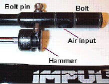 Bushmaster. Ve vrchní části zbraně běhá čtyřportový venturi bolt, ve spodní je uloženo kladívko spolu s ventilem. V rámu zbraně se nachází solenoid spolu s boardem. Tato deska je srdcem IMPULSE a řídí chod zbraně přes