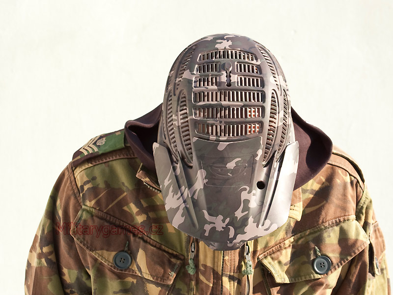 Maska je dodávána v mnoha barevných variantách, zde vyobrazená je v provedení camo. Toto provedení rozbíjí při pohledu z dálky masu a siluetu masky a tak nás pomáhá skrýt před zraky protivníka, vždyť hlava je první věcí, kterou na protihráči spatříme a světlá plocha obličeje je v příšeří lesa velmi demaskující.