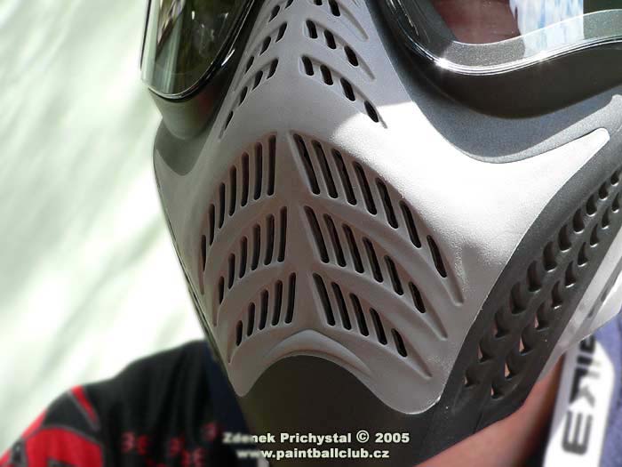 Vantage je moderně konstruovaná maska a svůj vzor má evidentně v modelu Profiler. Je lehká, dobře vyvážená a pohodlná, přední a boční díly má gumové, což má za následek vyšší životnost těchto nejvíce namáhaných částí a navíc i jejich vyšší odolnost proti rozbití kuličky při zásahu. Opět vyniká možností velmi rychlé výměny skla, zde dokonce v novém řešení, tuto činnost tedy nyní zvládne opravdu každý:) Jistící guma je kvalitní a dostatečně široká, součástí je i proti sluneční štítek neboli kšilt. Velmi dobře je řešena přední část masky, díky svému sklonu jde ústy vydechovaná vlhkost okamžitě mimo masku, což samozřejmě výrazně pomáhá omezit mlžení ochranného skla.