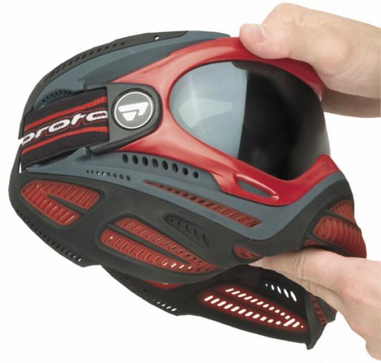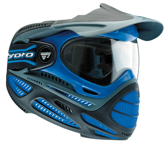 Jednou z masek, které stojí za povšimnutí je Proto Axis. Na první pohled je velmi podobná prvním modelům DYE Invision. Při bližším zkoumání zjistíte, že sklo je velmi blízko obličeje, blíže než je obvyklé u ostatních značek. Boky masky jsou vyrobeny z gumy a plastů, rám brýlí poskytují velmi dobrý výhled a sklo je profilované tak, aby eliminovalo odrazy světla. Maska je díky použitým materiálům o poznání těžší na druhou stranu bude vyhovovat i hráčům s větší hlavou, prtože boky kryjí i značnou část krku.