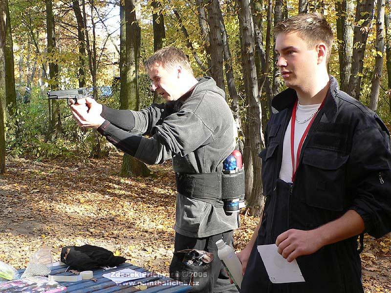 V pátek tedy proběhla na hřišti Pragin Pall soběšická minigame za účasti mnoha sportovních i rekreačních hráčů. Počasí bylo slunné, teplé a výtečně tak dotvářelo atmosféru tohoto herního dne. Hrálo se na dva týmy s množstvím různých scénářů, hry byly akční a kadenční. Premiéru ( povedenou ) zde měl Freestyle PRO, ve hrách se používaly dýmovnice a oblíbené pirátky ( že Pavle?) Zpestřením byla soutěž ve střelbě pistolí na 7 metrů, pro mnohé zúčastněné bylo překvapením jak nesnadné je trefit s kopající zbraní terč nepříliš vzdálený a měli tak možnost posoudit jak to v reálu chodí. Vítězem této soutěže se stal Luděk a odnesl si tak hlavní cenu časopis Facefull, kterou věnoval Brněnský Paintballshop. Hráči si také vyzkoušeli osobní souboje na jednu ránu s paintballovým značkovačem kde překvapivě dominoval jediný hráč výrazného talentu který dokonce porazil i Kamila z Warriors, zde se ovšem musím omluvit a opravdu se stydím, ale zapomněl jsem jeho jméno:( Zajímavostí byla i návštěva kluků z airsoftového týmu a možnost zastřílet si z jejich zbraní.