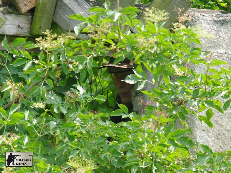 Po obědě se hrálo s AEG a to ve střední části areálu, která je velmi zarostlá křovinatým podrostem a vysokou trávou, plná rozvalin hospodářských budov a nezakrytých jímek a šachet a jde tedy o velmi nepřehledný a nebezpečný terén, který je plný překvapení a je herně velmi náročný. Hrálo se za velmi teplého počasí, slunce pálilo seč mohlo, což se podepsalo i na výkonosti hráčů. Herní den se tedy zakončil hrami v hlavní, stinné části areálu, bitvou okolo administrativní budovy.