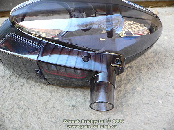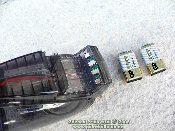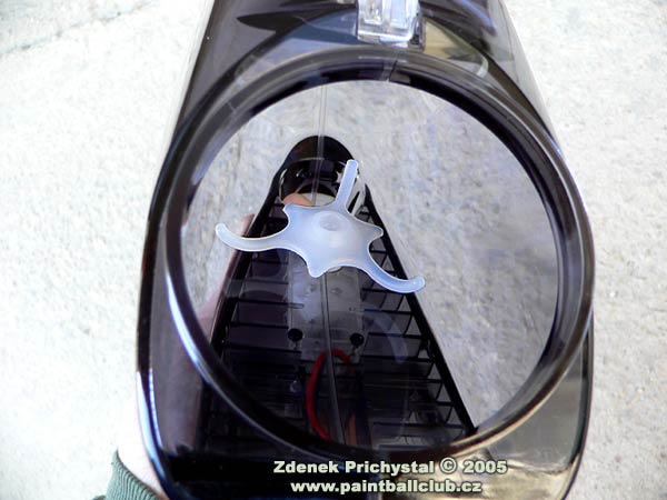 Nedávno jsme zde recenzovali výborný podavač Reloader od firmy Empire a dnes se podíváme na jeho přímého konkurenta, podavač TSA od firmy Odyssey. TSA je mladším bratrem známého Halo-B od něhož se na první pohled odlišuje protáhlejším a štíhlejším tělem. Dalším a výrazným rozdílem je samotný systém, TSA je totiž vybaven stále oblíbenějším zvukovým senzorem který aktivuje systém po každém výstřelu, nedochází zde tedy k prodlevám známým z optických systémů které čekají až na mezeru ve šňůře kuliček. Zadní strana je plochá a je vybavena on/off vypínačem a indikátorem stavu baterií. Baterie jsou umístněny klasicky, tedy ve spodní části zásobníku a jsou dvě 9.Voltové (nejsou součástí prodejního balení) Zajímavostí je u TSA kontrolní softvare který při naklonění zásobníku doprava zajistí točení vrtulky proti směru hodinových ručiček, při náklonu doleva naopak, kuličky jsou tak vytláčeny od nejnižšího místa směrem ke krku zásobníku. Toto je velmi vtipné a účelné řešení, v praxi i vítané. Plasty těla nepůsobí tak bytelně jako u HALO, ale na druhou stranu ani příliš křehce a lacině, víčko se během testu samo neotevíralo a to ani při pádech a skocích, je tedy dostatečně pevné a spolehlivé.