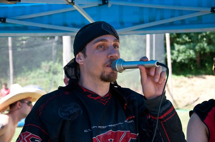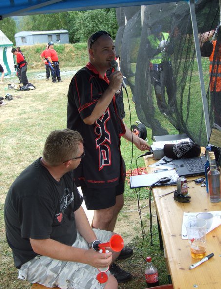 Po malé pauze došlo k rozlosování hráčů podle barev kuliček do tří týmů, které se měly utkat v Xballu. Každý tým měl celkem cca 15 hráčů a každý svého patrona. Modří Boba, červení Ládíka (ex Orca Killer) a mě bílá. Už při rozdělování triček jsem všem mým hráčům sděloval, že vítězství je naše. Pravda, můj tým bílých byl asi věkově a výškově lehce v nevýhodě, Ovšem zkušenosti byly na naší straně! Hry mezi červenými a modrýmy byly hodně dravé, pak se utkali červení a bílí a už byla patrná únava na obou stranách. Na výsledky se mě neptejte, ale vím, že vyhrál tým bílých (můj, pochopitelně:-)).Po celou dobu jsem se snažil, pokud možno trefnými, komentáři a hudbou provázet hry i pauzy. Atmosféra byla vynikající, vedro strašné a souboje drsné.