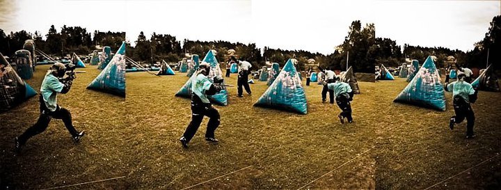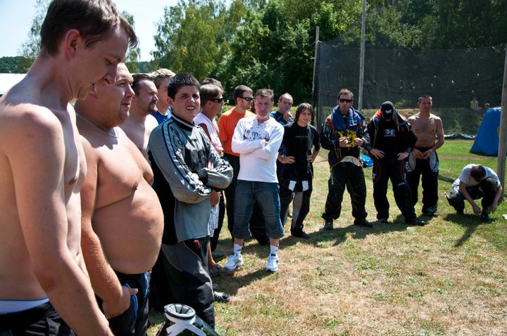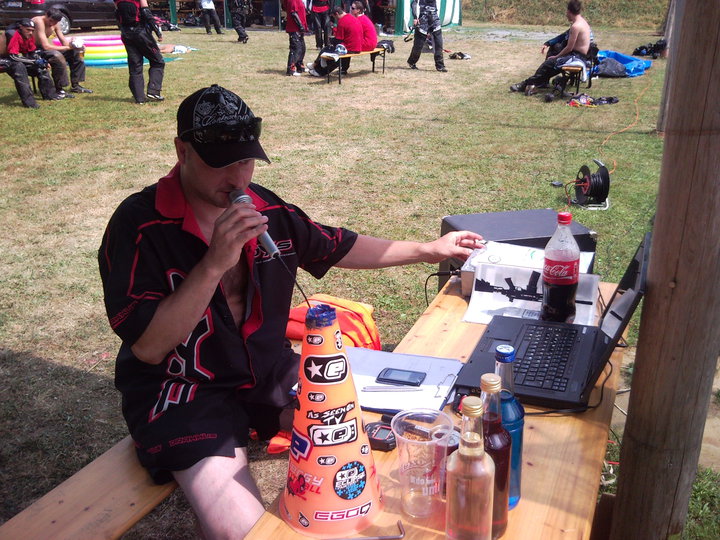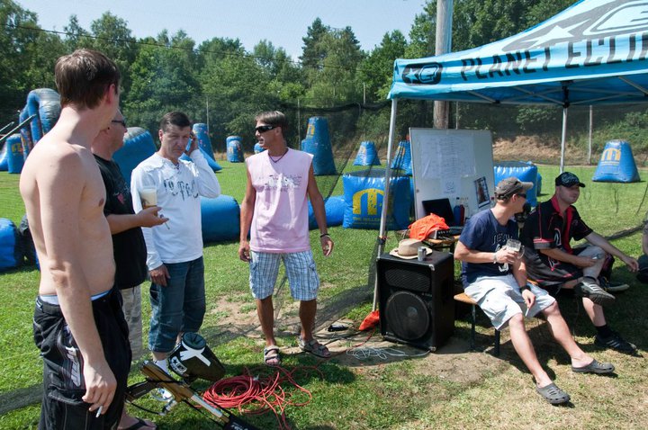 Ráno jsem si přivstal za svítání, tak jak to dělají správní paintballisti, když normální lidi ještě spí. Zkontroloval vybavení, tentontokrát ne zbraň, ale aparaturu a s očekáváním vyrazil ku Praze. Na místo jsem dorazil něco po 9:00 hod. Sluníčko svítilo, tráva zelená, hráči už na místě a hrál se turnaj 1on1. Parádní prostředí, kvalitní zázemí, dokonce fontánka a bazének k ovlažení. Nahodil jsem aparatutu a rozjeli jsme circus.:-)