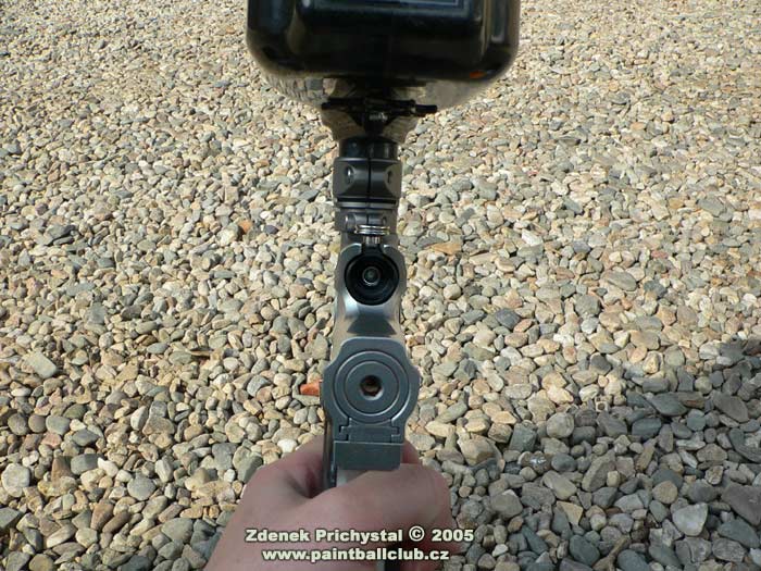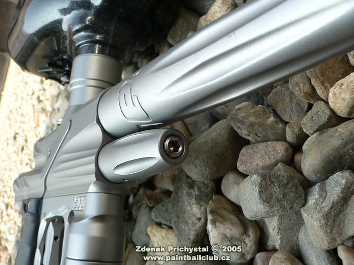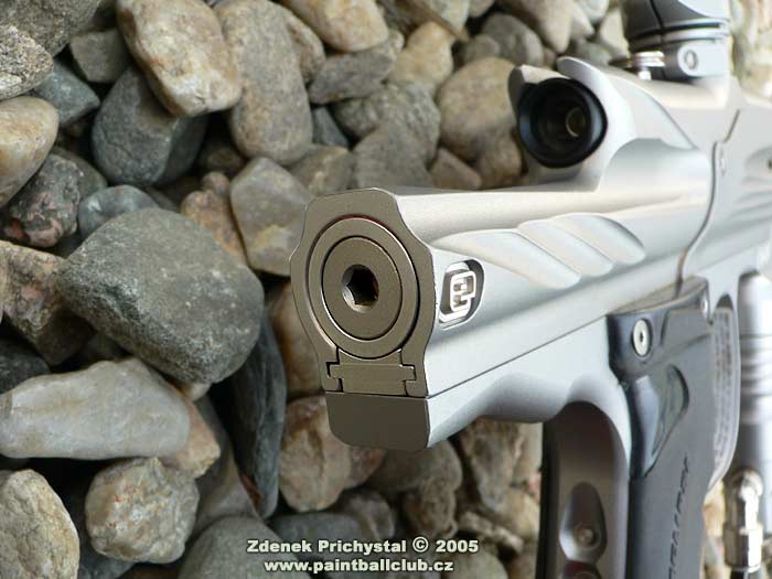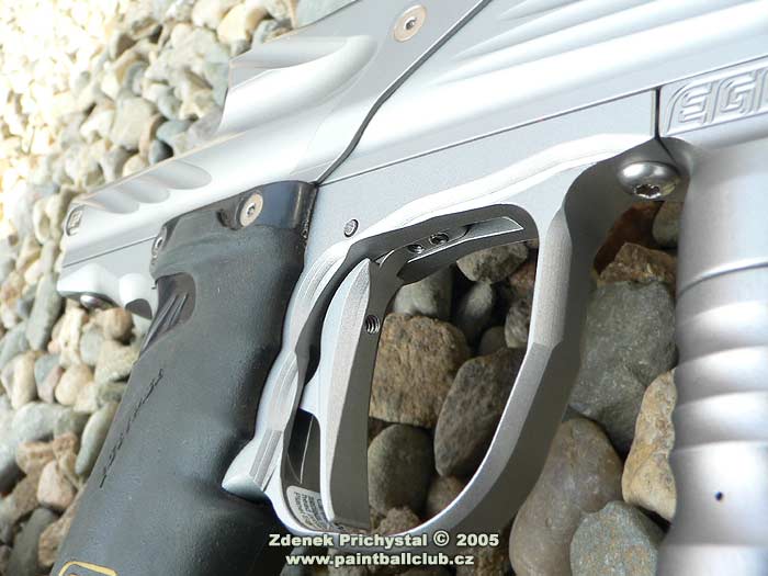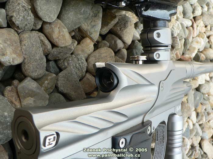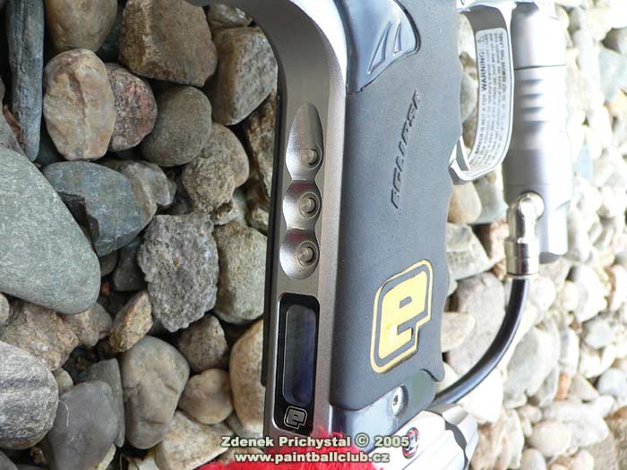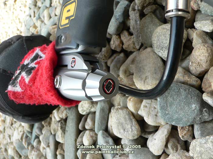 Jaké tedy nové Ego je? Na první pohled zaujme svým tech- designem a střední velikostí, dokonale opracovaným tělem a komplexním pojetím. Při uchopení do rukou mě opravdu překvapila téměř neznatelná váha, což ocení zejména fyzicky slabší hráči a útočníci kteří potřebují se značkovačem rychle a bez zbytečné námahy manipulovat, naopak pro zadní hráče může být toto jistou nevýhodou, zde trvá delší dobu než se značkovač při střelbě "usadí" a také udržet ho v klidu je díky systému a nízké váze pracnější nežli třeba u jeho největšího konkurenta, u Matrixu LCD. Ego má výbornou pažbičku s gumovým gripem která se velmi dobře drží, nemá snahu vyklouznout a dobře tak pomáhá stabilizovat značkovač. Na zadní straně je osazena displejem známým i z firemního E-blade a třemi tlačítky mikrospínačů kterými lze nastavit vše potřebné, mimo jiné i různé střelecké módy a turnajová nastavení, což ocení především hráči kteří se účastní turnajů v zámoří a naopak odsoudí ti, kdož neradi cokoliv nastavují a preferují jednoduchost. Mimochodem, toto je problémem všech sportovních super značkovačů, počínaje Impulse Eliminatorem a konče DM5, elektronická nastavení a regulátory jsou tu proto abychom ze svého značkovače dostali v různých podmínkách maximum a tvrzení " já na nic radši nesahám " jsou tedy poněkud nevhodná a my se tak připravujeme o to hlavní za co jsme zaplatili, tedy o výkon a efektivitu. Spoušť je jak vyžaduje trend dvouprstá, dobře tvarovaná a samozřejmě plně stavitelná. Přední části dominuje výrazný LPR který pracuje naprosto bezchybně a je taktéž seřizovatelný, zde dle turnajových požadavků pouze za použití nástroje. In-line regulátor je kvalitní, dobře dávkující ( rozptyl byl při zkušební střelbě s kuličkou DraXxus Midnight Winter fill +/- 4 fps ) a dobře sedí v ruce. Nadstandardem je zde on/off cradle system dle současných požadavků umístněný pod pažbičkou, což zajisté potěší a ušetří nemalý peníz. Další co mě velmi zaujalo je "vychytávka" v podobě stahovacího kolínka, které je asi o 2 mm posunuto do leva a brání tak kuličce při pohybu značkovačem odskočit nahoru a následně tak být "střižena" boltem. Věru, vtipné řešení. Samozřejmostí je systém el. oka, spolehlivý a nezbytný, přístupný po odšroubování krytů. Bolt je samomazný, s integrovaným jistícím pinem. Zde bych osobně uvítal lepší zpracování, tedy šikmé náběhy a přední porting známé např. z Equalizeru od NewDeSign, tento značkovač by si je jistě zasloužil. Hlaveň je děrovaná, velmi kvalitní a dlouhá 14' s průměrem 0.693.