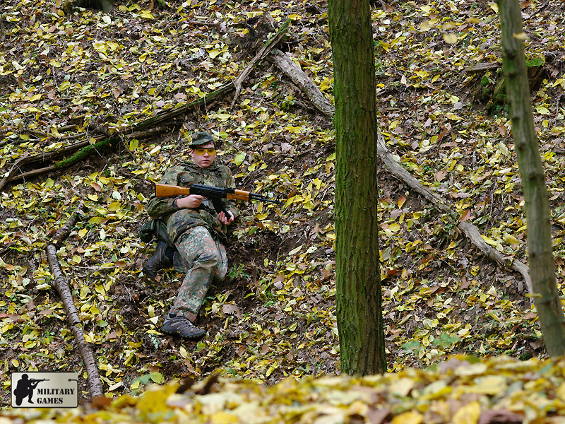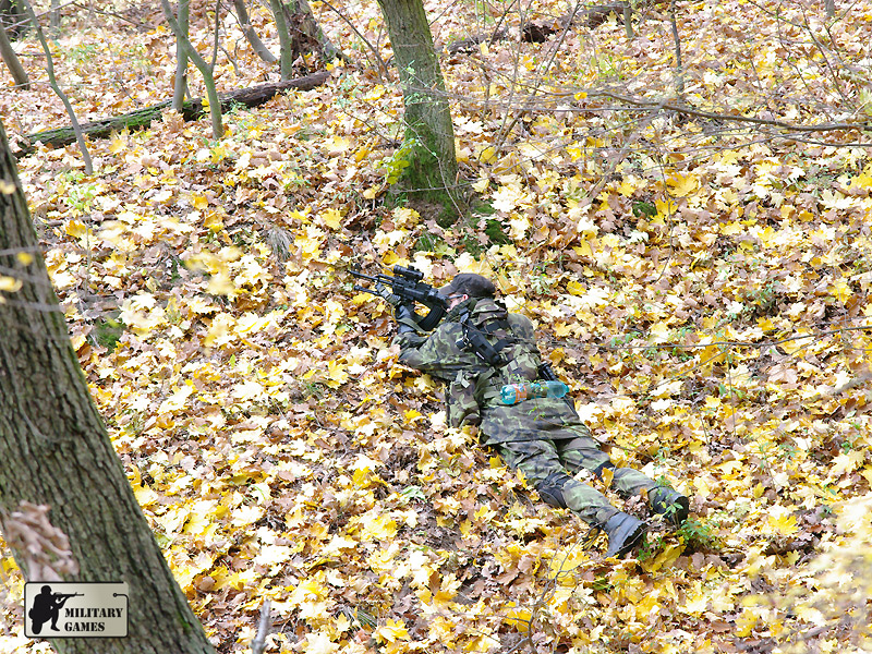 Podzim je pro hry v přírodě jako stvořený, příjemné teploty vzduchu, velmi pestře zbarvený les a většina listí již opadaná, takže je terén lépe průchodný a průhledný, ale díky barevnému spadanému listí, pokrývajícímu zem se nemá oko čeho chytit a tak se protivník velmi těžko hledá, zvláště dokáže-li setrvat v klidu a zbytečně se nehýbat. Tuto sobotu se poprvé hrálo i v zadní, poměrně členité části rozlehlého areálu, takže hry byly fyzicky náročnější, než zde bývá zvykem. Také hry samotné byly klidnější, množství barevných bodů které vytvářela podzimní krajina mátlo oči a ukrývalo protivníka, postup tak byl opatrnější a pomalejší, hráče dokázal prozradit pouze neopatrný prudký pohyb. Sešla se zde parta nadšenců do airsoftu, hráči, kteří si přišli užít krásný podzimní den. Hrály se většinou kratší hry tak, aby zasažení zbytečně nevychladli a zábava nevázla.
