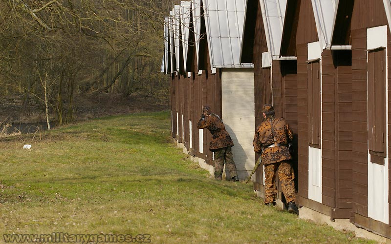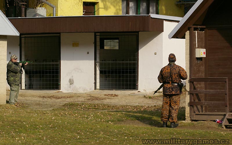 Hry samotné probíhaly po celý den, na začátek jsme si dali jednu hodinovou s jednoduchým scénářem, kdy se německá jednotka musela dostat přez území obsazené ruskými vojáky do zajetí v americké zóně a navíc musela vyhledat ukrytou zástavu, bez které by něměla právo na zajetí a poté se již odehrávaly rychlejší a akčnější hry jak v kempu samotném, tak i v jeho lesnatém a členitém okolí. Prostředí bylo velmi hratelné, kemp byl velmi prostorný a z části zastavěný hustými řadami chatek o které se sváděli urputné boje. Navíc se během dopoledne vyjasnilo a vládlo velmi příjemné počasí, což samozřejmě zvýšilo herní pohodu.