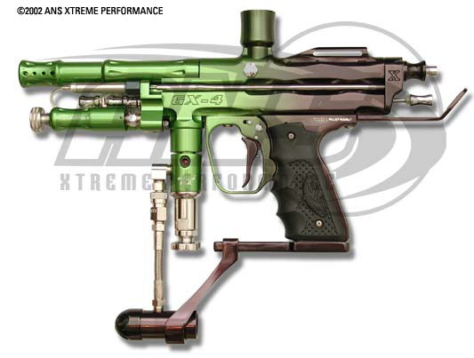 Jedním z výrobců zabývajících se stavbou vlastních modelů Autocockeru je firma ANS. Její model G - 2 v naprosté spokojenosti používáme ve dvou kusech v našem klubu již čtvrtým rokem a proto se zaměříme v tomto článku na její nejnovější generaci GX - 4. Model GX - 4 je jak již název napovídá čtvrtou generací firemní modifikace která proslula vynikajícím poměrem výkon/cena. Tělo je na první pohled totožné s předchozími modely, po bližším ohledání ovšem zjistíme že bylo značně odlehčeno a zkráceno. Vybaveno je dnes nezbytným centerfeedem a kuličkovou blokací. Přepracovaný pneumatický regulátor vyniká spolehlivostí a vysokým výkonem, nečiní mu problém kadence až 10 kul/sec. Jackhammer II. regulátor se kterým se můžeme setkat i při upgrade Impulse je vybaven dalším portem a ve spolupráci s třícestným regulátorem zrychluje funkci nabití a návratu zadního bloku, to vše při provozním tlaku 250 - 300 PSI. Tento model se také dočkal v současnosti nejpopulárnější spouště, oblíbeného Blade, zde již v novém kyvném provedení které odstraňuje známé bolesti cockerovské tažné spouště. Pro zvýšený plynový výkon byl také upraven N2 hammer kit, který je nyní lehčí a s menším koeficientem tření. Venturi bolt je známý z předchozích modelů a nebyl důvod ho měnit, naopak nový a spolehlivější je nyní jistící pin se zadním tlačítkem. Pažbička je známý a vynikající Benchmark s gumovými a pohodlnými střenkami. Nově je GX - 4 vybaven asa adaptérem s uzavíratelným cradle systémem, který je dostatečně nízko posazen a umožní nám bez problémů používání i objemnějších vzduchových lahví.