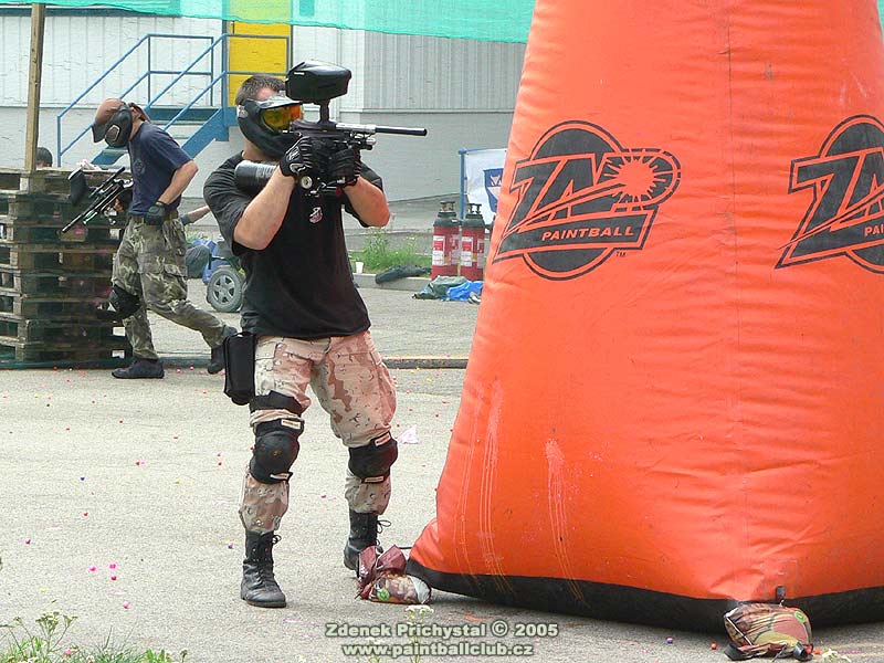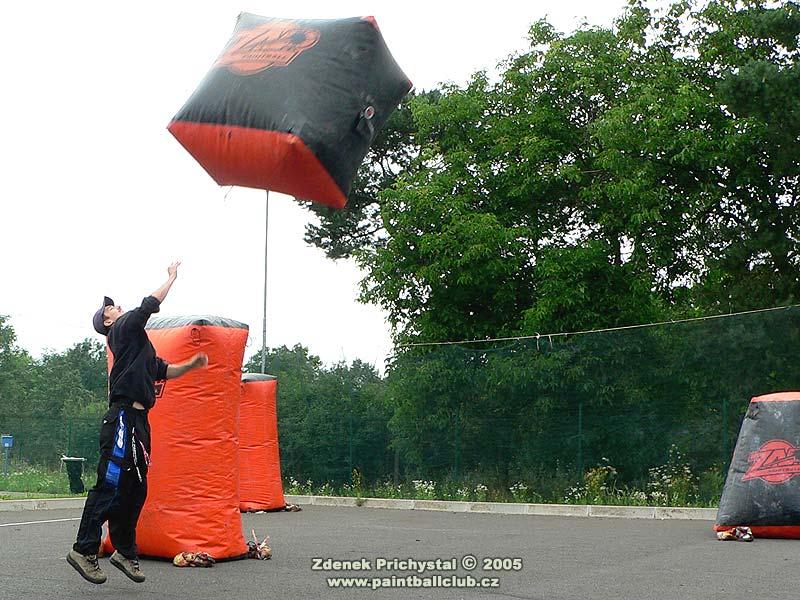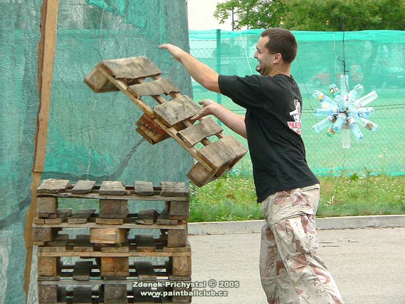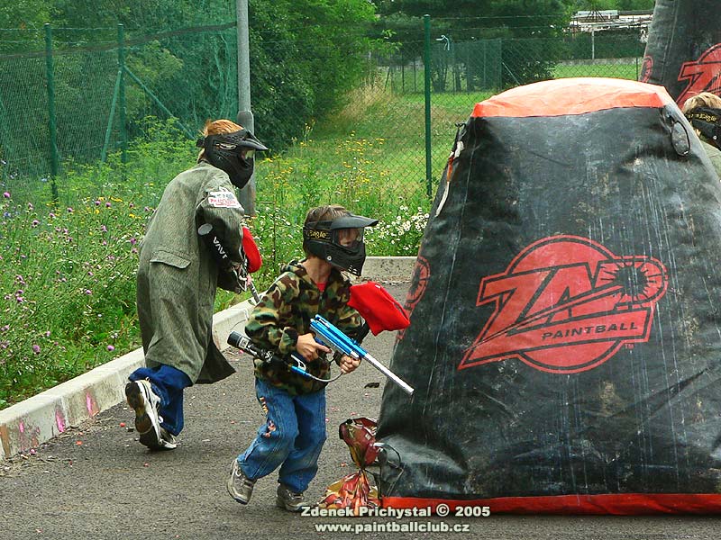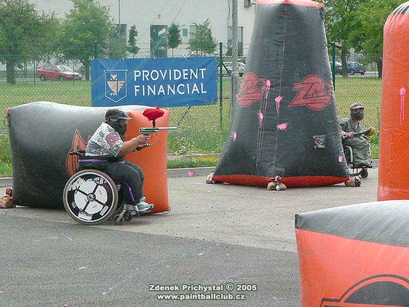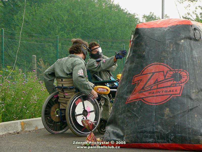 Paintball se tedy hrál na SupAirball hřišti a to stylem X-ball, tedy tříčlenné týmy a středová vlajka. V první části dne byl turnaj zdravotně handicapovaných, všichni hráči byli upoutáni na vozíky a proto byly jako zásahové zóny zvoleny terče na kolech vozíků. Turnaj se vyznačoval bojovností a odhodláním, někteří přítomní hráči využili pozvání a po zapůjčení vozíků se také zapojili do hry a měli tak možnost vyzkoušet jaké to je být při pohybu odkázán pouze na dvě kola, muset manévrovat s vozíkem což samozřejmě vyžaduje obě ruce a navíc i střílet. Zde se musím zmínit o přítomné hráčce jejíž jméno bohužel neznám a která zde dominovala, bylo vidět že paintball se jí opravdu zalíbil a která je také údajně držitelkou několika medailí z paralympiády. Poté dostali možnost vyzkoušet si paintball také ti nejmladší, po shlédnutí jejich her je zřejmé že o další generaci paintballistů nemusí mít místní klub obavy.