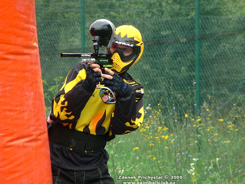 X-ballu se zúčastnily domácí týmy a jako host team Alcatraz, hrálo se opravdu naplno a popravdě mě herní umění a nasazení některých domácích hráčů kteří navíc hráli na nafukovacím hřišti poprvé i překvapilo. Zmínit se tedy musím o Liborovi Č, milovníku Autocockerů, který by se v českém sportovním paintballu rozhodně neztratil, jména dalších bohužel neznám:( Hrálo se až do večerních hodin, poté se paintball musel i přes velký zájem hráčů ukončit a začalo se balit hřiště. Program a hudební vystoupení samozřejmě pokračovaly dále a my vzhledem k hojnému výskytu krásných slečen a Litovelského piva jen litovali, že nemůžeme zůstat, obzvláště Beri, který se zde několikrát zamiloval.