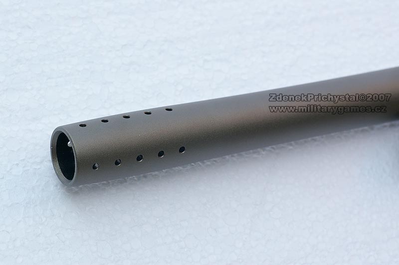 Zbraň má dále základní hlaveň o délce 9,5“, antisifon v přední ručce a samomazný závěr hlavně z delrinu se šikmým náběhem vzduchu.
