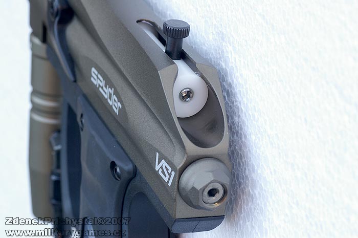 VS-1 je velmi lehká, hlavně kvůli plastovému rámu spouště. Po výměně hlavně za kvalitnější typ (Smart Parts, Dye) můžete klidně vyrazit i na nějaký Rookie turnaj, kde budete mít diky vysoké kadenci jistou výhodu. Jen je třeba nezapomenout odstranit zevnitř zbraně malý switch, který deaktivuje možnost střílet trojkové dávky.