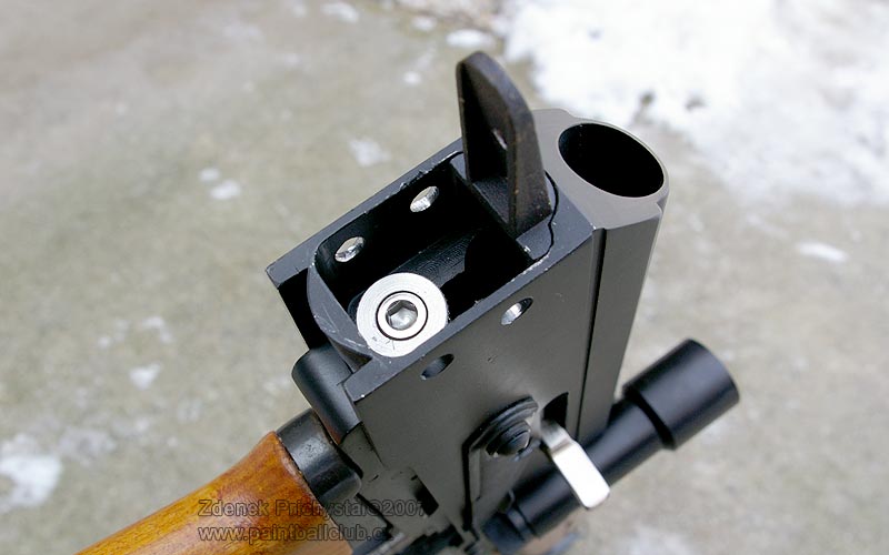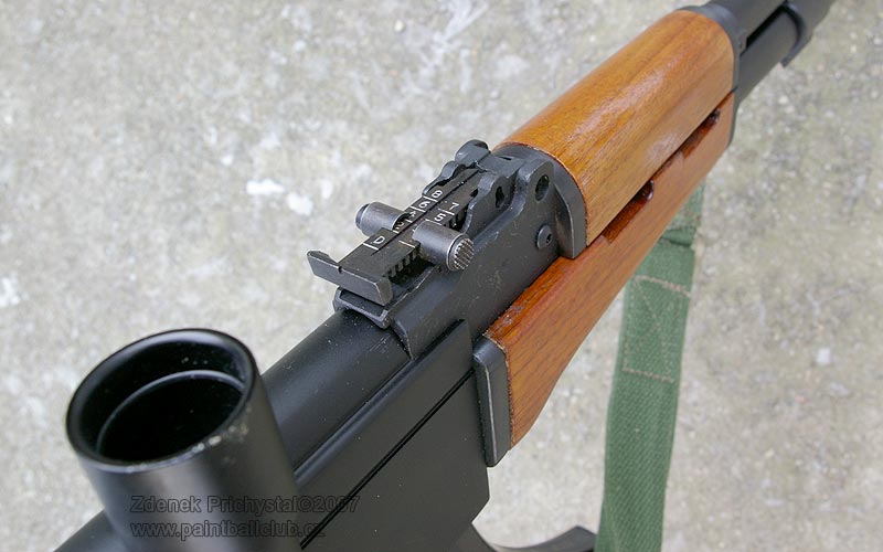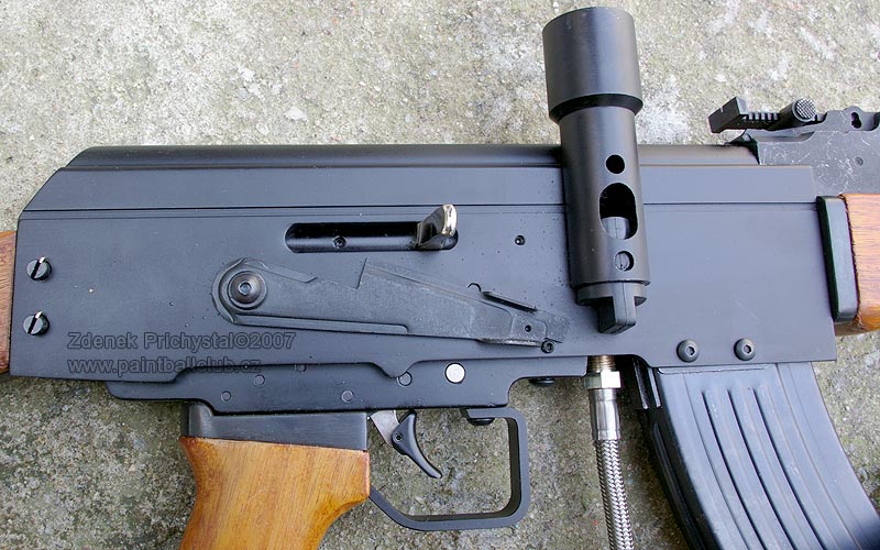 Natahování závěru je stylové, také téměř totožné s originálem, poměrně tuhé a krátké. Levá strana těla je opatřena pouze blokací a je zde tedy dostatek prostoru pro přichycení boční montáže na optiku. Spoušť je jednoprstá, tuhá a je opatřena pojistkou proti nechtěnému výstřelu. AK 47 má samozřejmě možnost regulace úsťové rychlosti. Ke stavěcímu šroubu se dostaneme po poměrně rychlé a jednoduché demontáži pažby, po odstranění dvou pinů sejmeme pažbu a jsme tam, kde jsme chtěli a stejným způsobem se provádí i rozborka zbraně. Hlaveň je díky absenci portingu poměrně hlučná, což ale k této zbrani sedí:)
