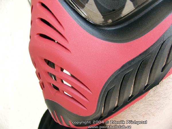 Rám masky je dvoudílný, tuhá část tvoří rám okolo brýlí a táhne se přes líce až na bradu. Zbytek je vyplněn měkčí hmotou která je dostatečně měkká na to aby při zásahu propružila a snížila tak možnost rozbití kuličky, obzvláště při zásahu z větší dálky nebo tvrdou kuličkou, tolik oblíbenou českými hráči, nechápajícími oč tu kráčí. Toto řešení dává masce dostatečnou tuhost a dovoluje jí udržet si tvar.