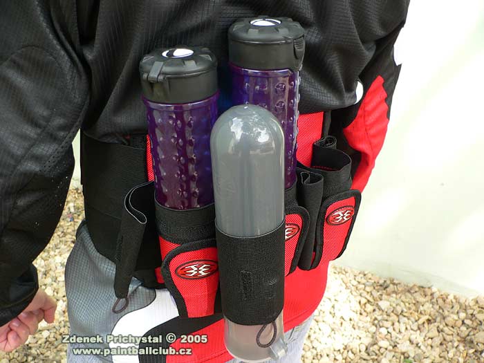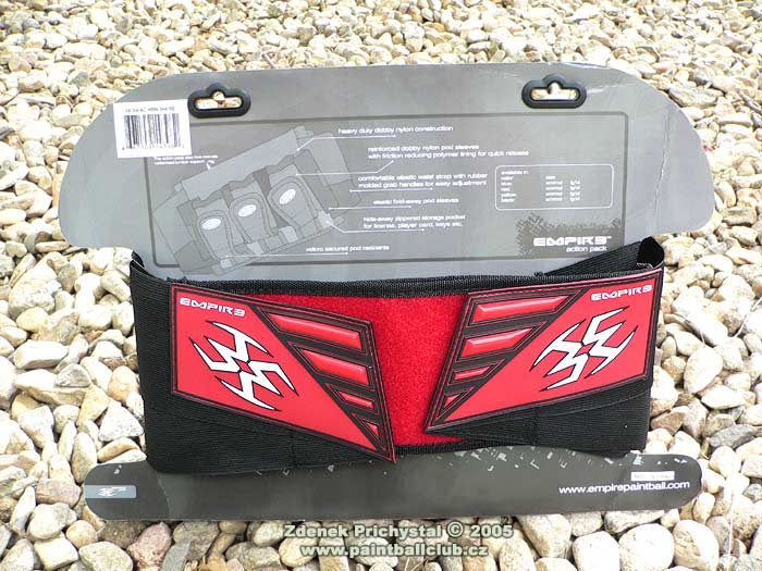 Záda si musíme vybírat podle individuální potřeby . Lesní hráč ocení zřejmě model opatřený maskovacím vzorem a vyztuženými komorami na tuby tak, aby mohl prázdnou tubu v klidu vrátit jednou rukou zpět zatímco sporťák touží po zádech barevných, ladících s týmovým dresem a vyztužené komory ho až tak netrápí neboť na vrácení tuby zpět většinou nezbývá čas a tuba se tak odhazuje ( aby se po hře samozřejmě sebrala, pokud možno majitelem) Já vám teď představím záda která mě zaujala a která ocení zejména sporťáci, i když radost zajisté udělají i extravagantním militaristům. Vyrábí je firma Empire která se zejména v posledních dvou letech velmi intenzivně prosazuje na trhu a jejíž výrobky jsou vyhledávány pro svoji kvalitu a praktičnost. Vyrábí se v několika barvách a provedeních která se od sebe liší počtem komor na tuby a konstrukcí. Zde prezentovaný action pack je vybaven třemi pevnými komorami které jsou vyztužené tak, aby jste mohli použitou tubu bez problémů vrátit jednou rukou zpět, navíc jsou otevřené v obou směrech a vy tak můžete tahat tuby spodem nebo vrchem tak, jak vám vyhovuje. Přiznám se že mě osobně jako známému "staromilci" vyhovuje tahání tub vrchem a také proto je mi tento model sympatický. Tři tuby se mi zdají jako dostatečná rezerva ale pokud jste opravdovými kropiči a nebo vyrážíte na dlouhou hru do lesa bez možnosti doplňování střeliva, jsou zde k dispozici další čtyři pozice pro tuby. Ty jsou tvořeny pružnou gumou a jsou dostatečné pevné a spolehlivé, pokud je nepoužíváme jsou připnuty suchým zipem k nosnému pásu a tím pádem i prakticky schované. Nosný pás je široký, pevný a pohodlný, se zapínáním na praktický suchý zip doplněný o stahovací gumy, které oceníme zejména při běhu s plnými zády. Z vnitřní části jsou záda "vypolstrována" pěnovým nástřikem který záda fixuje v bederní části a zvyšuje tak komfort nošení. Celá záda jsou z velmi kvalitních materiálů a v praxi ani po roce používání nevykazují nadměrné opotřebení. Opomenout nesmíme ani fakt, že záda velice dobře chrání spodní a střední část trupu při zásahu a to jak z přední tak i zadní strany. Kuličky v tubách jsou také chráněny před vlhkem a rozmačkáním a hlavně jsou vždy při ruce a o to přece jde.