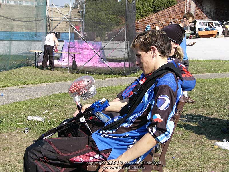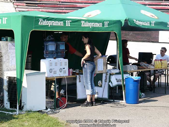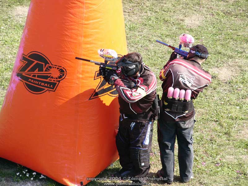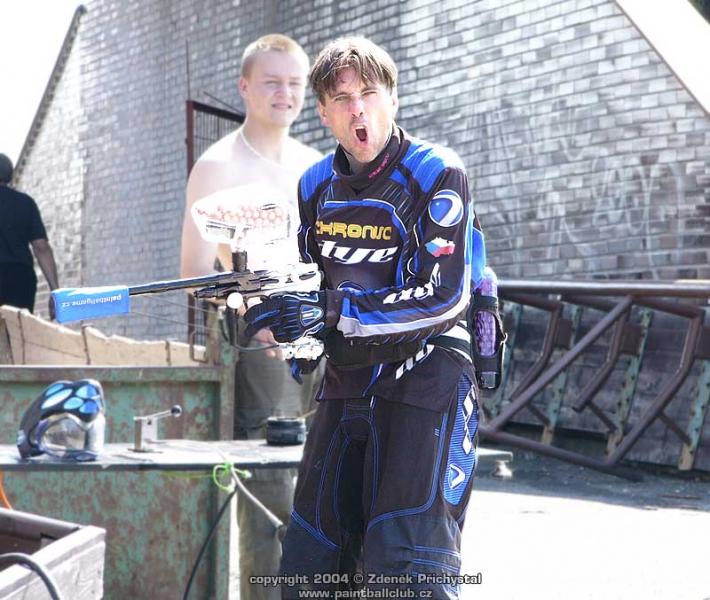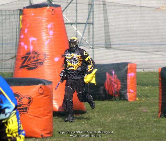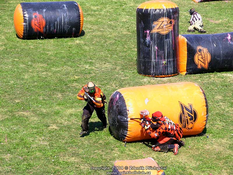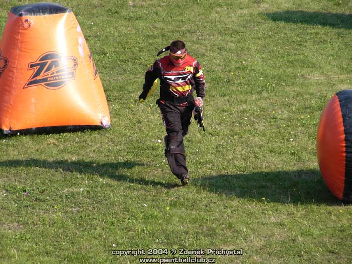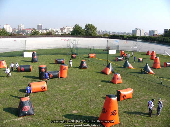 4.-5. září proběhlo pražské kolo ZCES které se odehrávalo na velodromu Nad Třebešínem který skýtá velmi solidní herní plochu a výborné zázemí v podobě hotelu s restaurací a parkovací plochou. Organizace byla tradičně velmi dobrá a to i ( nebo snad především? ) díky velmi zkušenému a výkonnému dívčímu týmu organizátorek. Po oba herní dny panovala pohodová atmosféra a počasí bylo přímo tropické, což mimochodem odnesla moje lýtka která byla v kraťasech vystavena pro ně neobvykle dlouhému pobytu na slunci proti čemuž protestovala spálením si pokožky a svoji nelibost dala najevo výrazně červenou barvou. To samozřejmě přinášelo i jisté problémy hráčům a hlavně rozhodčím kteří byli nuceni trávit dlouhé hodiny na pálícím slunci poměrně navlečeni, na druhou stranu zase přinášelo zisky přítomnému občerstvení s chlazenými nápoji všeho druhu a slušným pivem Zlatopramen. Pro příznivce kalorií v pevné podobě zde byly klobásy, grilovaná křídla a další, výtečné byly i řízky z křečka. Celek doplňovala dvojice stánků s běžným paintballovým sortimentem a oblečením od DYE, které vyniká velmi atraktivním designem který přebíjí i fakt že cena již tak atraktivní není. Specialitou byla i ze začátku velmi nízká cena kuliček ZAP která bohužel netrvala dlouho a tak byl můj záměr koupit za tuto velmi příjemnou cenu celý kamion zmařen všekontrolujícím Vladanem. Nu co, co není dnes může být zítra, proto neklesejme na mysli. S potěšením jsem zaznamenal i přítomnost stejného D'Jeje ( jeje, jak se to píše? ) který ozvučoval i předešlé turnaje pořádané clubem Troia a který hraje solidní rock který samozřejmě k paintballu neodmyslitelně patří.( když teď tak nad tím přemýšlím tak ono vlastně k paintballu patří i u mladších hráčů nahánění ženských, u nás starších popíjení piva a u obzvláště vitálních obé ) Ale konec filozofických úvah a zpátky k realitě. Tak tedy vše bylo připraveno jak má být a to i po stránce herní. Hřiště byla navržena a postavena ( mimo jiných ) zkušenými harcovníky paintballclubu Troia a to velmi dobře. Rozhodcování se ujali známí a hráči velmi oblíbení SOP, zde vedeni zkušeným Quinem. ( Budeš-li to číst nezapomeň prosím na dalším turnaji který klub tě chválí! ) Mimo jiné se musím ještě vrátit k ubytování, tentokráte jsme moudře zvolili hotel který se nacházel přímo v areálu velodromu a od hřiště byl tedy vzdálen pouhých 50m! což jak všichni uznáte ( tedy samozřejmě krmě našich oponentů ) je velmi komfortní a vše co potřebujete ke zdárnému hraní a přežití je na dosah ruky( obrazně )