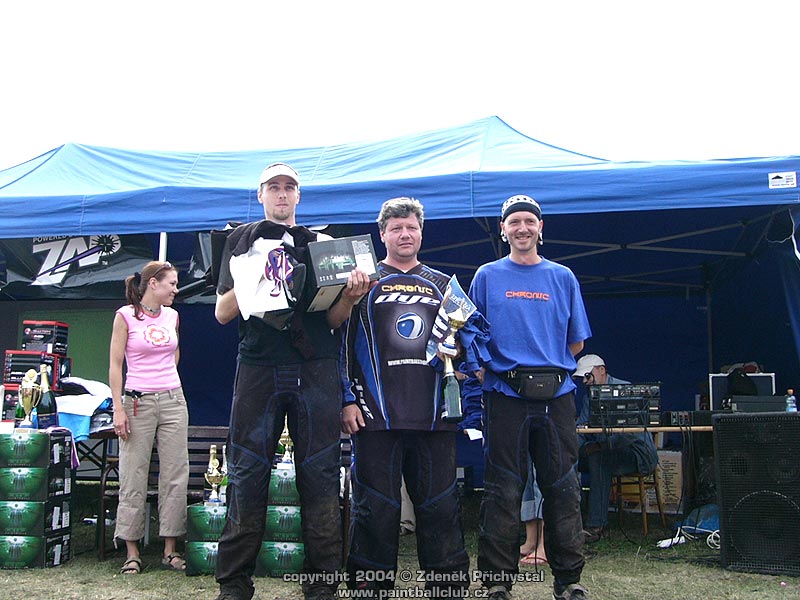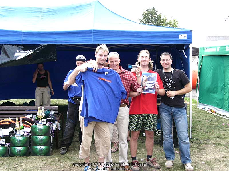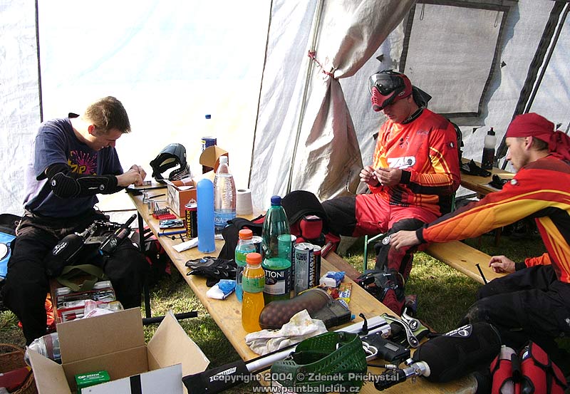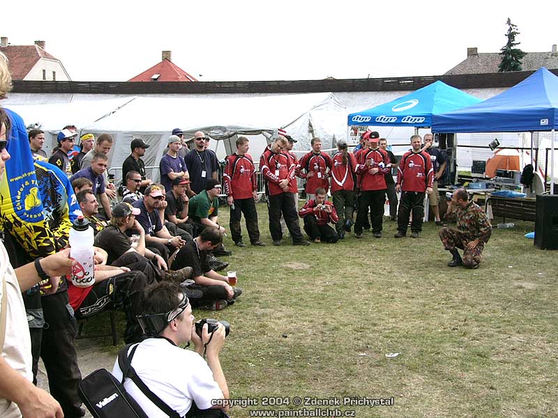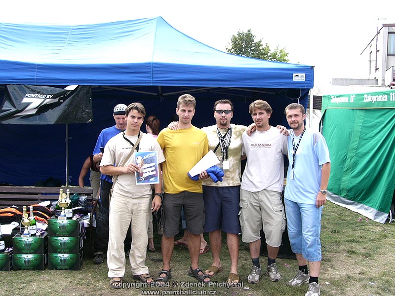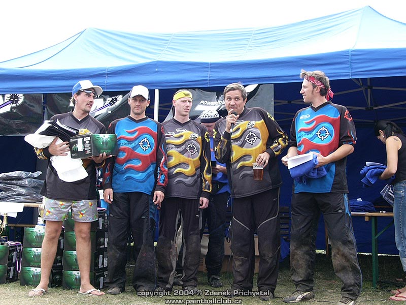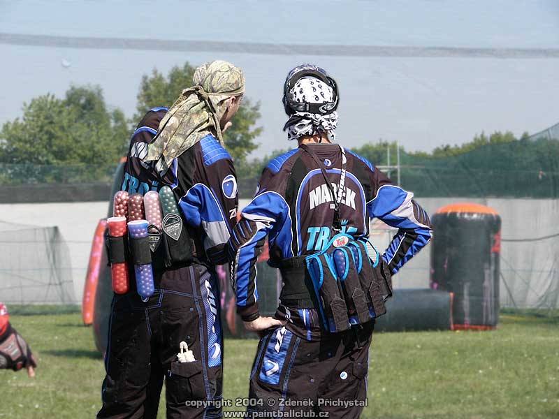 4.-5. září proběhlo pražské kolo ZCES které se odehrávalo na velodromu Nad Třebešínem který skýtá velmi solidní herní plochu a výborné zázemí v podobě hotelu s restaurací a parkovací plochou. Organizace byla tradičně velmi dobrá a to i ( nebo snad především? ) díky velmi zkušenému a výkonnému dívčímu týmu organizátorek. Po oba herní dny panovala pohodová atmosféra a počasí bylo přímo tropické, což mimochodem odnesla moje lýtka která byla v kraťasech vystavena pro ně neobvykle dlouhému pobytu na slunci proti čemuž protestovala spálením si pokožky a svoji nelibost dala najevo výrazně červenou barvou. To samozřejmě přinášelo i jisté problémy hráčům a hlavně rozhodčím kteří byli nuceni trávit dlouhé hodiny na pálícím slunci poměrně navlečeni, na druhou stranu zase přinášelo zisky přítomnému občerstvení s chlazenými nápoji všeho druhu a slušným pivem Zlatopramen. Pro příznivce kalorií v pevné podobě zde byly klobásy, grilovaná křídla a další, výtečné byly i řízky z křečka. Celek doplňovala dvojice stánků s běžným paintballovým sortimentem a oblečením od DYE, které vyniká velmi atraktivním designem který přebíjí i fakt že cena již tak atraktivní není. Specialitou byla i ze začátku velmi nízká cena kuliček ZAP která bohužel netrvala dlouho a tak byl můj záměr koupit za tuto velmi příjemnou cenu celý kamion zmařen všekontrolujícím Vladanem. Nu co, co není dnes může být zítra, proto neklesejme na mysli. S potěšením jsem zaznamenal i přítomnost stejného D'Jeje ( jeje, jak se to píše? ) který ozvučoval i předešlé turnaje pořádané clubem Troia a který hraje solidní rock který samozřejmě k paintballu neodmyslitelně patří.( když teď tak nad tím přemýšlím tak ono vlastně k paintballu patří i u mladších hráčů nahánění ženských, u nás starších popíjení piva a u obzvláště vitálních obé ) Ale konec filozofických úvah a zpátky k realitě. Tak tedy vše bylo připraveno jak má být a to i po stránce herní. Hřiště byla navržena a postavena ( mimo jiných ) zkušenými harcovníky paintballclubu Troia a to velmi dobře. Rozhodcování se ujali známí a hráči velmi oblíbení SOP, zde vedeni zkušeným Quinem. ( Budeš-li to číst nezapomeň prosím na dalším turnaji který klub tě chválí! ) Mimo jiné se musím ještě vrátit k ubytování, tentokráte jsme moudře zvolili hotel který se nacházel přímo v areálu velodromu a od hřiště byl tedy vzdálen pouhých 50m! což jak všichni uznáte ( tedy samozřejmě krmě našich oponentů ) je velmi komfortní a vše co potřebujete ke zdárnému hraní a přežití je na dosah ruky( obrazně )